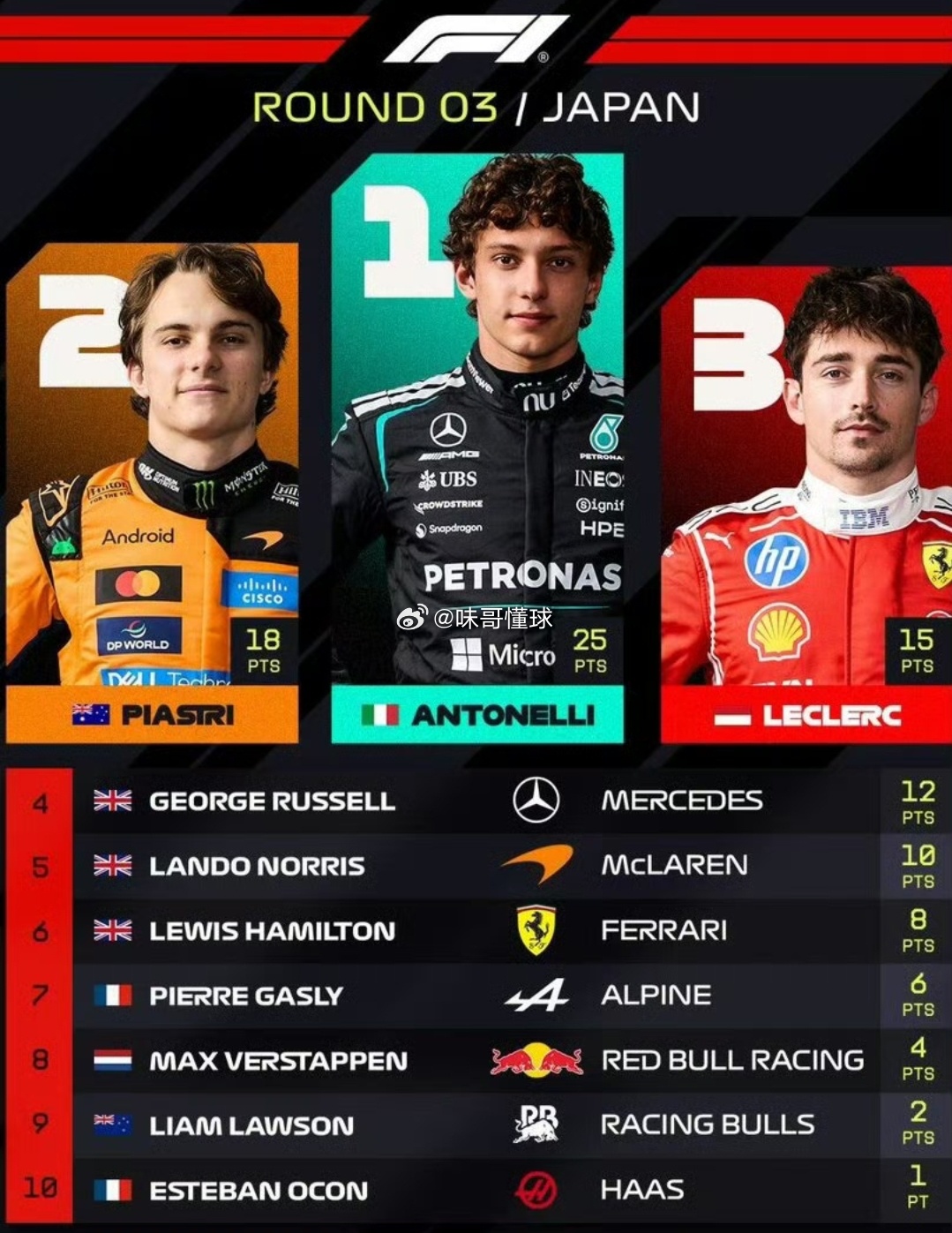 最差队友汉密尔顿,内斗最狠,外战放水,没有一点团队精神,前几站也是这样。安东内利夺得F1日本站冠军