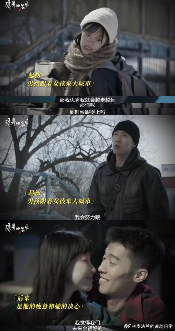 《隐身的名字》可是何宇穹...任小名并没有因为你的放手更幸福😭完全是两个小苦瓜来的!没有人会比何宇穹更爱任小名...但何宇穹已经跟不上任小名的脚步了!尤其是知道她为了自己放弃留学机会的时候...好难过!!出租屋文学就这样,可以同苦但很难共甘!因为真的爱,所以没有人能允许自己成为对方的累赘!“那你就回头看看,我在起点做你的坐标”这句太痛了!😭