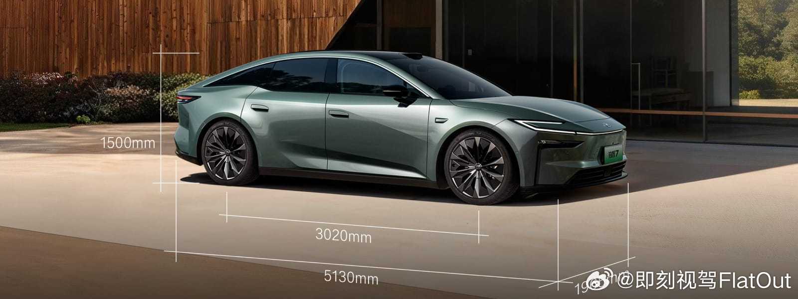 4、车身尺寸长宽高分别为5130×1965×1506mm,轴距3020mm