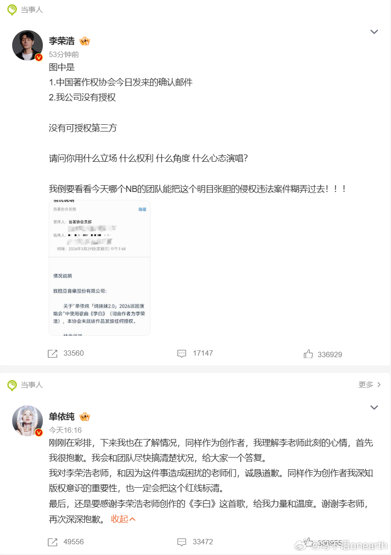李荣浩4连质问单依纯单依纯道歉