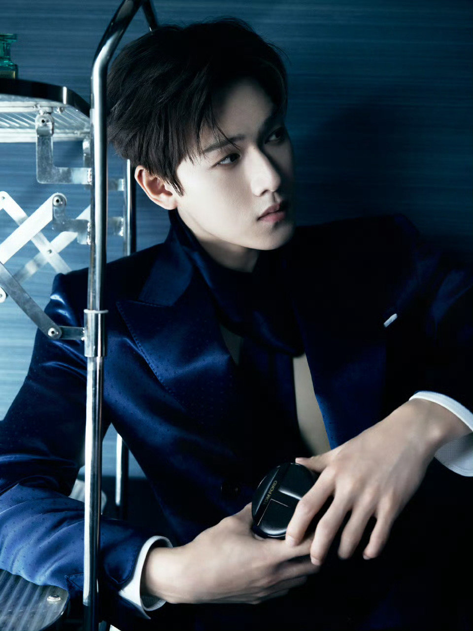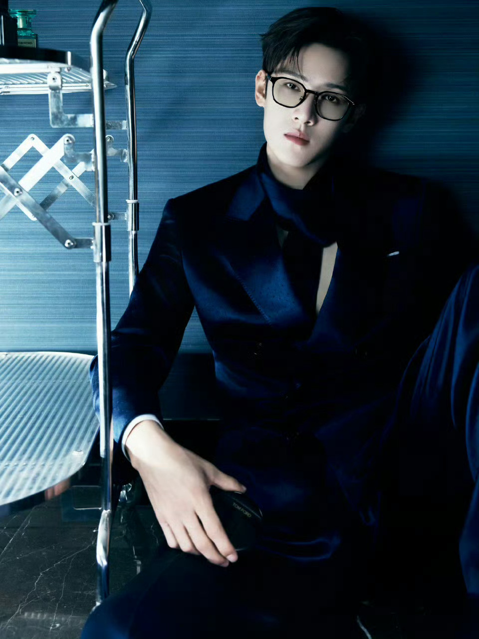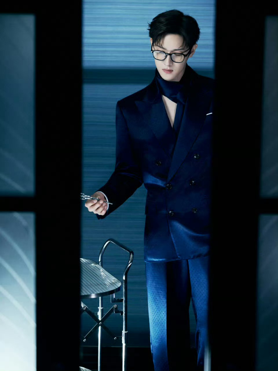 今日出席Tom Ford Beauty活动上身Tom Ford 2026春夏系列蓝色缎面西装套装的小林,真空加同色系领巾,佩戴黑框眼镜,禁欲氛围感拉满~
