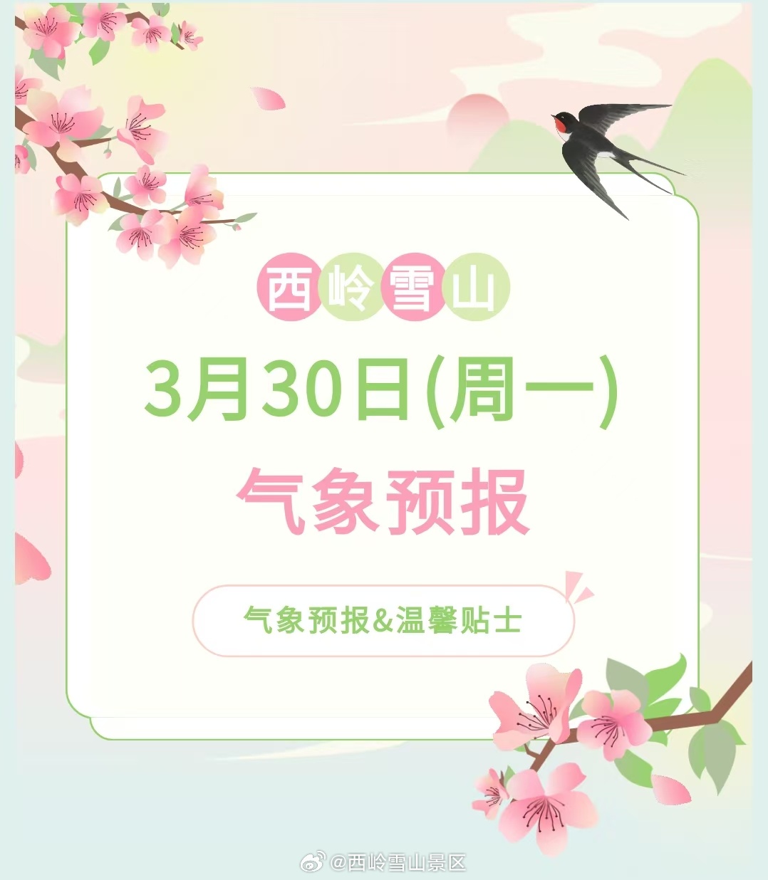 西岭雪山3月30日(周一)气象预报#西岭雪山 #