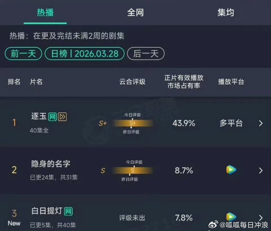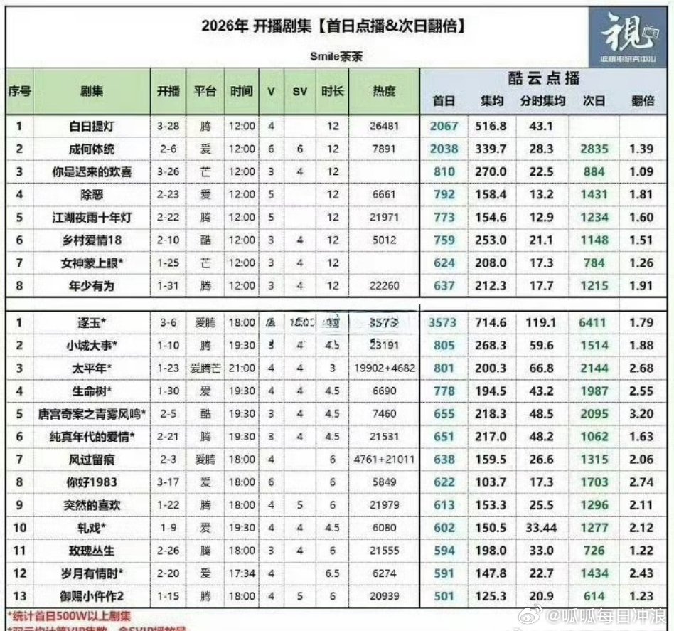 迪丽热巴、陈飞宇白日提灯首日成绩出来了:2067w 7.8%,这个成绩如何?算爆、热还是平播?