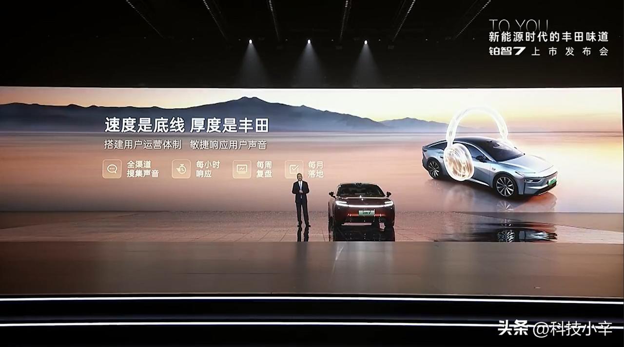 今天广汽丰田的铂智7正式上市了。 这是丰田首款带鸿蒙座舱的大型纯电轿车,限时补贴后14.78万起,顶配才19.98万,全系都卡在20万以内。配置给得很足,入门版就标配鸿蒙座舱、L2级智驾、座椅通风加热,17万多就能配齐双腔空悬、激光雷达高阶智驾、鸿蒙座舱三件套,之前这些配置基本都要30万往上的车型才有。 这次发布会直接搞成用户答疑会,还给出了不少兜底承诺,比如电车自燃厂家直接赔新车,电池衰减超标免费换,双腔空悬质保能到10年30万公里。预售的时候订单就已经破万,现在上市就能交付试驾。 我感觉丰田这次是真放下身段了,合资车都卷到这个份上,20万级纯电市场怕是要更热闹了。