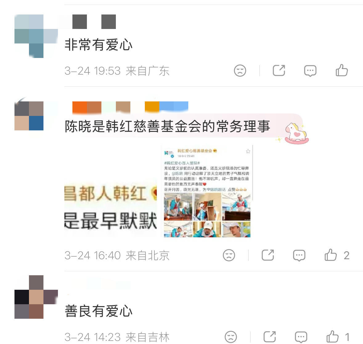 “行胜于言”这个词在陈晓身上得到了印验也是默默坚持公益很多年了😌
