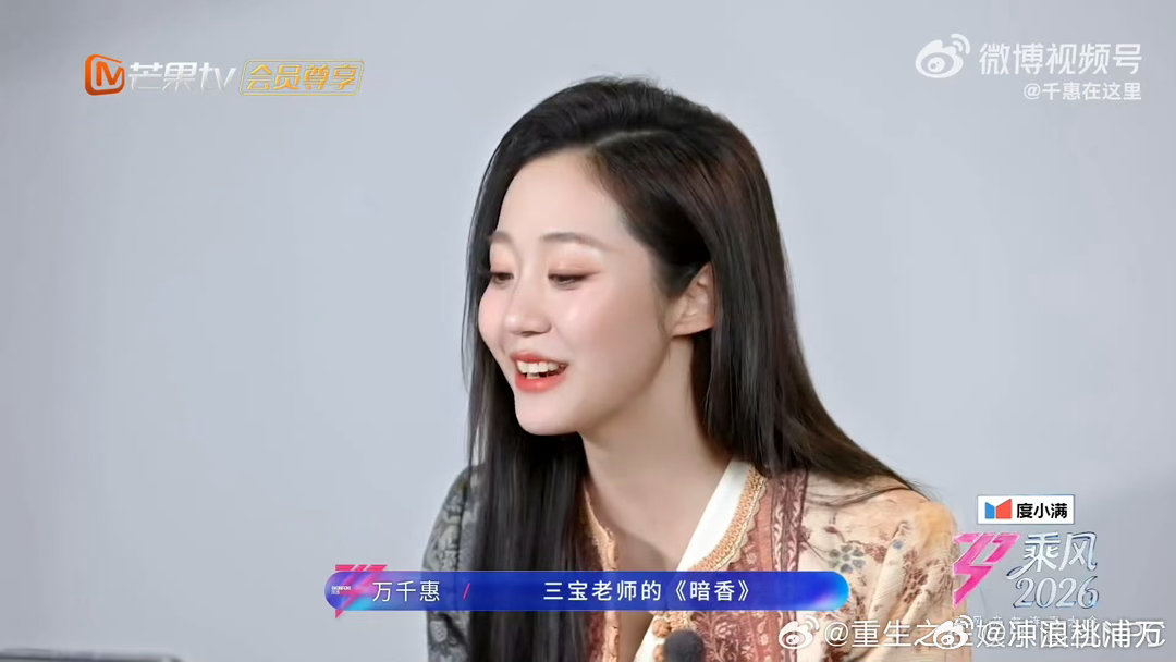 万千惠选三宝的歌不担心版权万千惠直接把“版权自由”打在公屏上,自曝选的都是自家三宝老师的 《暗香》、《让她降落》哈哈哈!乘风2026