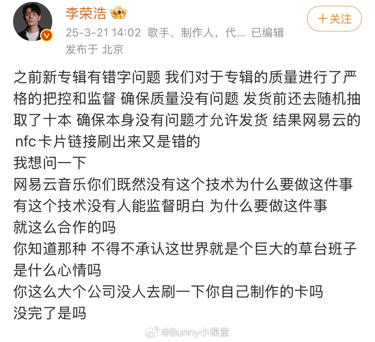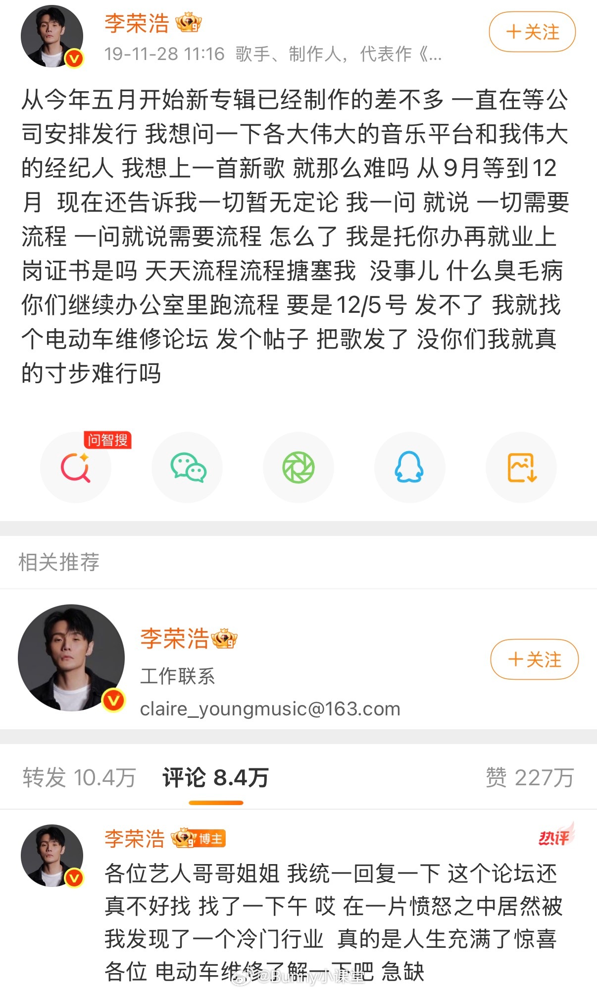 李荣浩好典型的高精力人群,一天的行程赶上普通人一周了,不愧是个人战高手