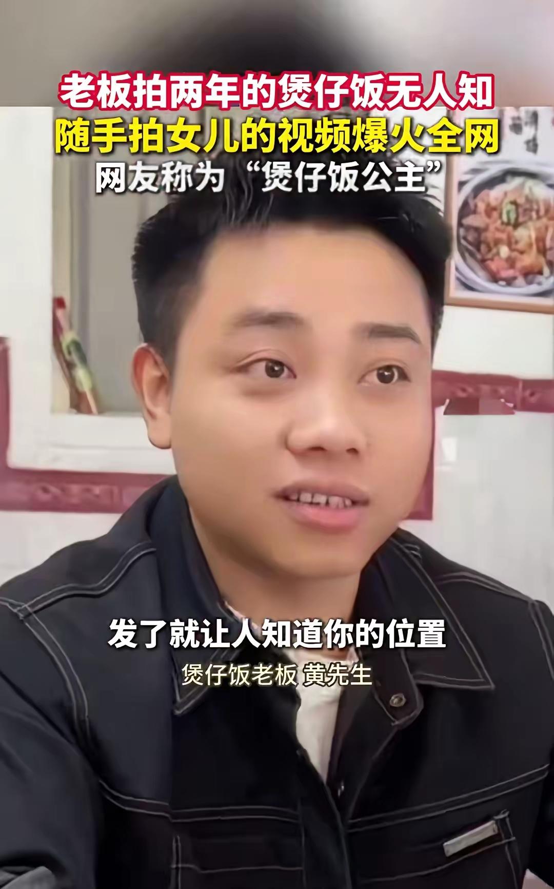 广东揭阳,一个卖煲仔饭的老板,拍了两年视频,没什么人看。 他叫黄泽鑫,就是个普通的小店老板,每天守着灶台,砂锅、米、火候,拍了一百多条,认认真真,播放量一直上不去,生意也就那样,不温不火。 然后今年三月,女儿过四岁生日。 他没策划什么,就随手拍了一下,孩子戴着个小头纱,笑起来眼睛弯成缝,奶声奶气的,也没什么特别的布景,就是平常那种感觉。发完他就去后厨继续忙了。 结果48小时,播放量到了2100万。 他说自己完全没想到,以前也给女儿拍过生日,从来没往外发,这次就是随手一发,然后就炸了。 网友在评论区把孩子叫煲仔饭公主,还有很多人顺着视频找到他店里来消费,曾经没什么人的小店,突然来了一波客人。 这事有点让人说不清楚。两年煲仔饭视频,拍得认真,没人看。一条孩子视频,什么都没做,两千多万。 但仔细想想也不奇怪。他拍煲仔饭是想让人看他的手艺,孩子那条视频他根本没想让人看,就是记录一下,反而是这种没有目的的东西,看着最真。 人能感觉出来一个人是不是在表演,小孩根本不会演,那种真就是真。 他现在还是守着那家小店,还是每天煲仔饭,只是多了一些专程过来的客人。