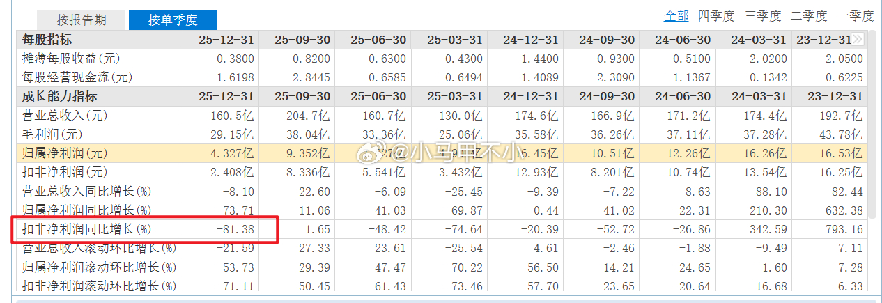 控制一下预期:一季度利润下滑,营收也下滑。这不是啥秘密,稍微提醒一下不知道的朋友