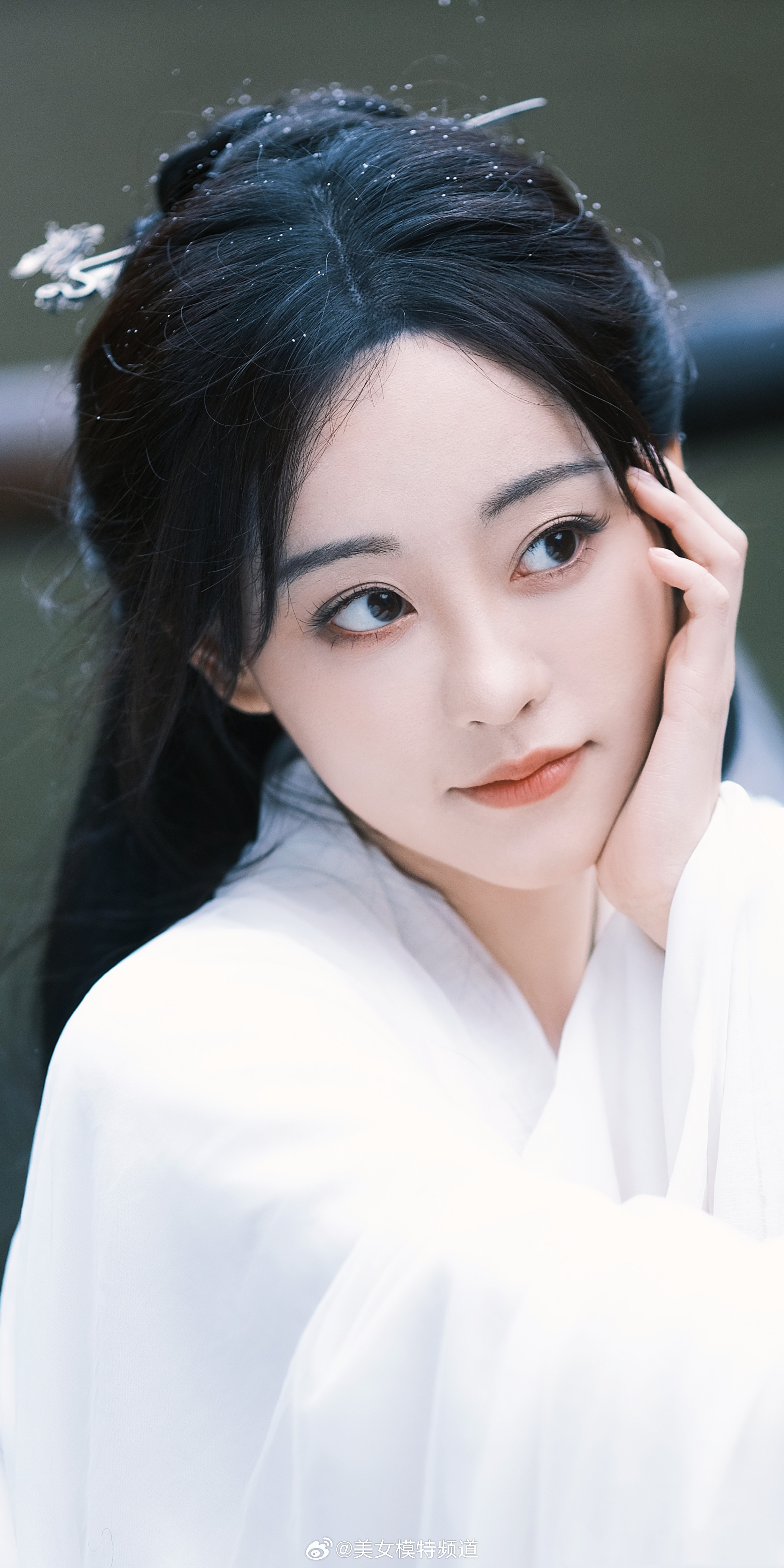 赵丽颖无袖纯白裙简洁清新美照