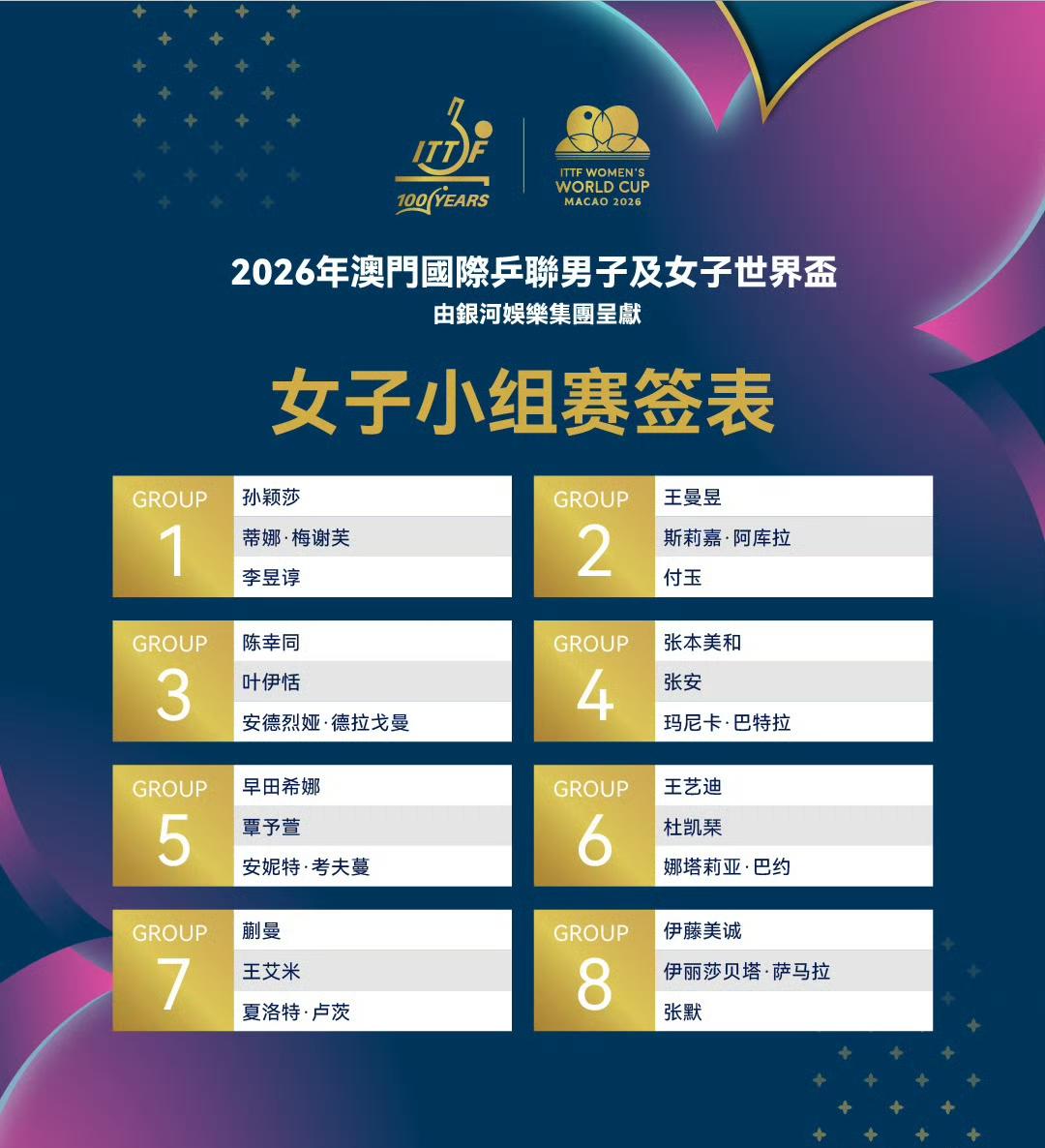 澳门乒乓球世界杯女单抽签分组结束,国乒6位选手全集中在了前八组,竞争是相当激烈,首先是从组内冲破重围,再看接下来的对手。