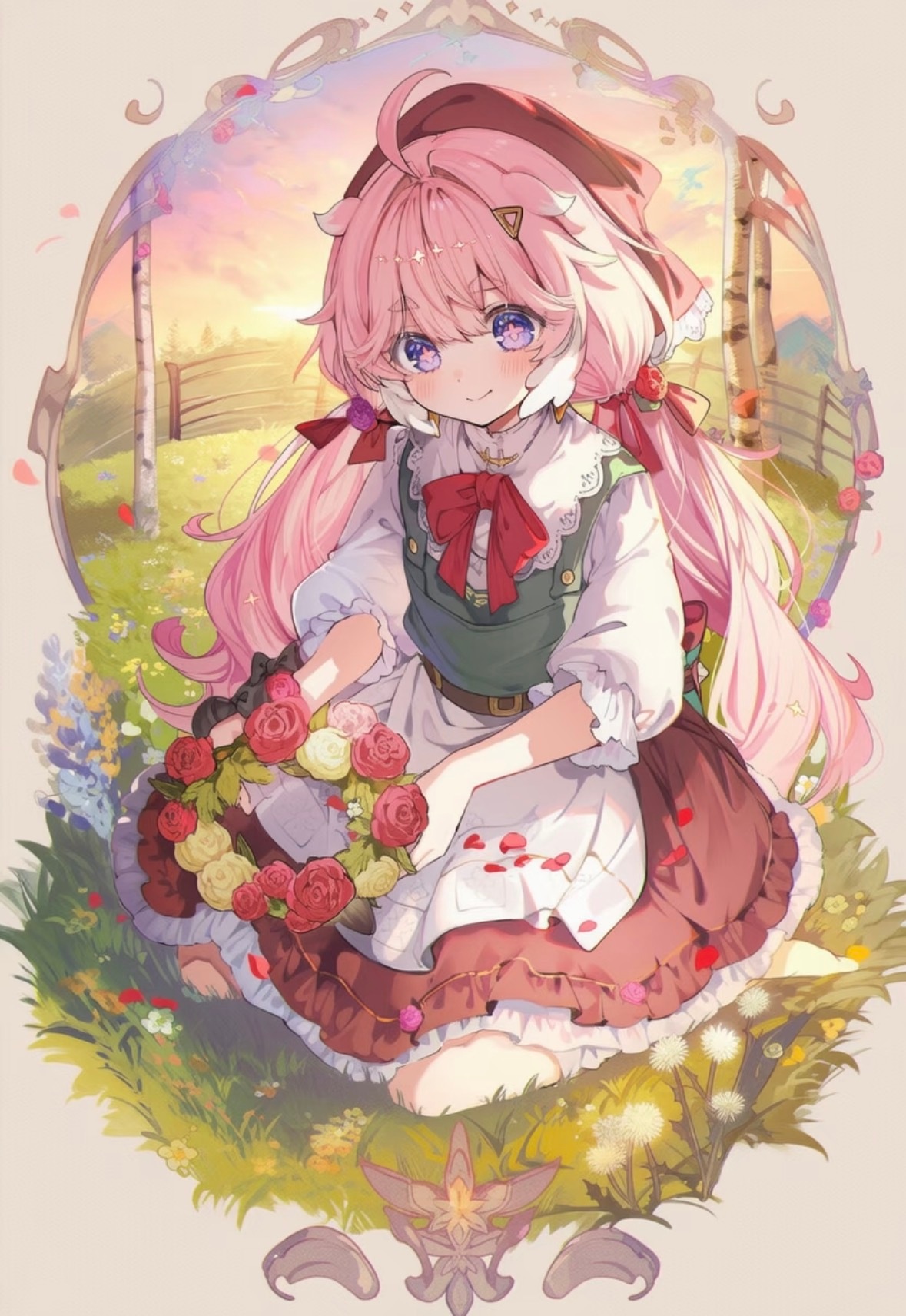 温柔晚霞下的优雅女神,粉色礼服与白色毛绒外套的完美搭配,尽显高贵与浪漫。