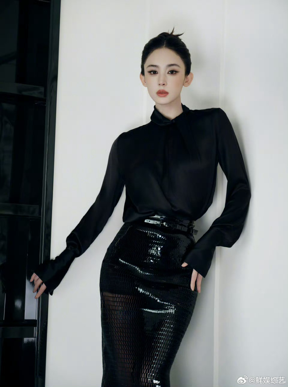 娜扎今日look黑蛇纹裙自带野性滤镜!娜扎利落盘发+红唇,冷艳与性感双杀,生图直出都抗打✨娜扎黑色蛇皮裙look