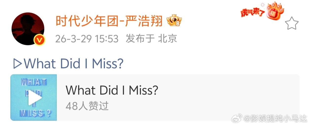 严浩翔分享歌曲不说多,马达三个字:听爽了!!!