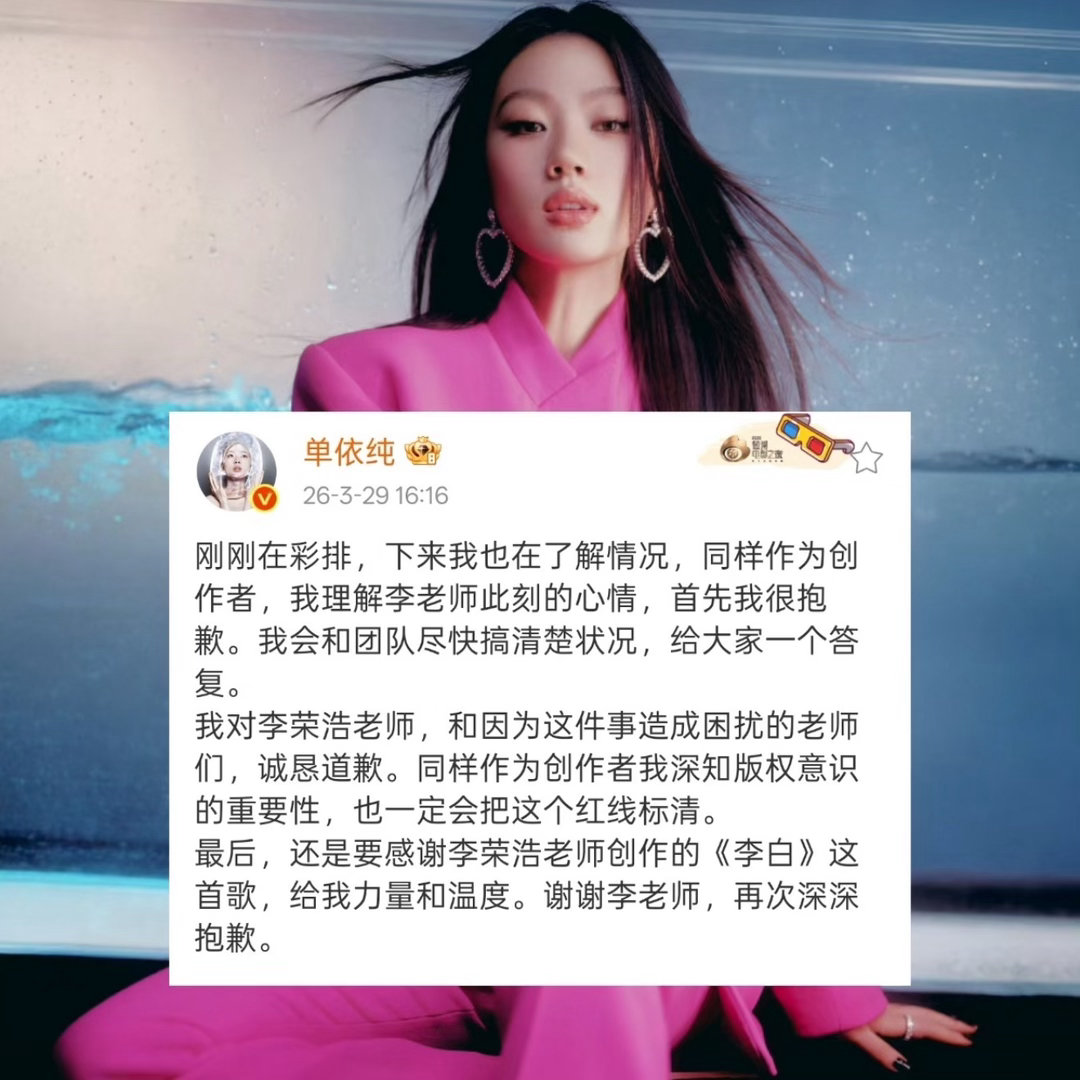 律师解读单依纯演唱会一半都是翻唱 律师解读单依纯演唱会一半都是翻唱说在博文中解释到关于翻唱你要找的不是原唱,而是词曲作者!
