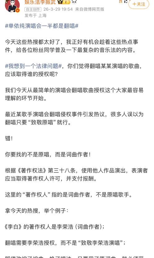 翻唱需要李荣浩授权,而不是“致敬李荣浩演唱”;