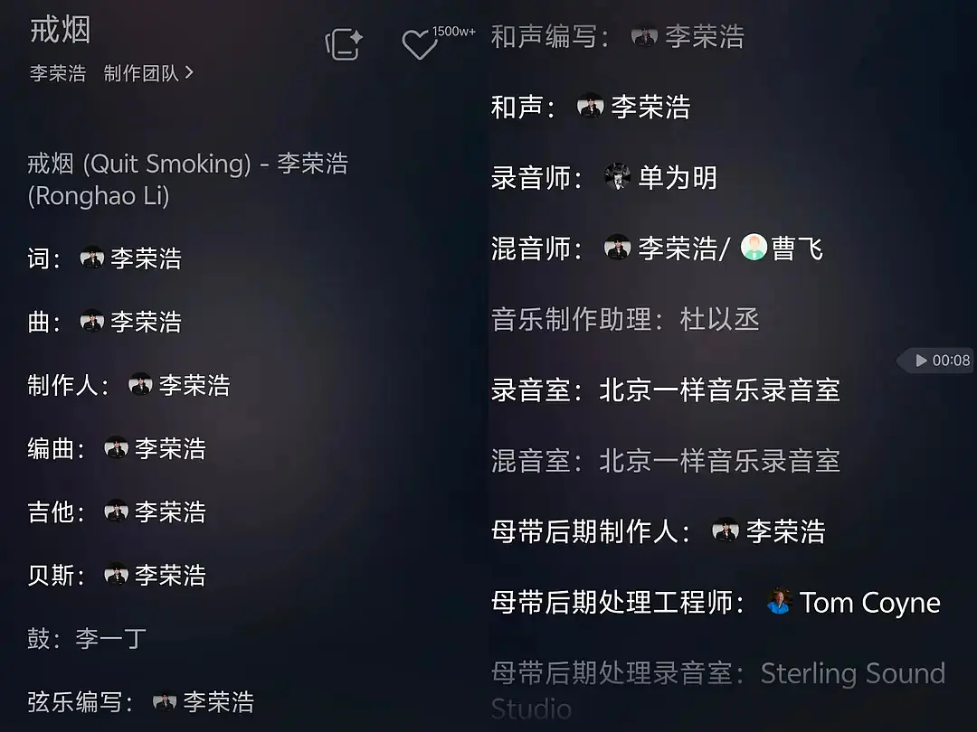 难怪李荣浩气成这样李荣浩好有才华,李白这首歌从词曲到制作人再到和声贝斯吉他全是自己来的。不仅这首歌,才知道他的爆曲真的多,真一个人干所有活,全能原创歌手,果然实力就是底气