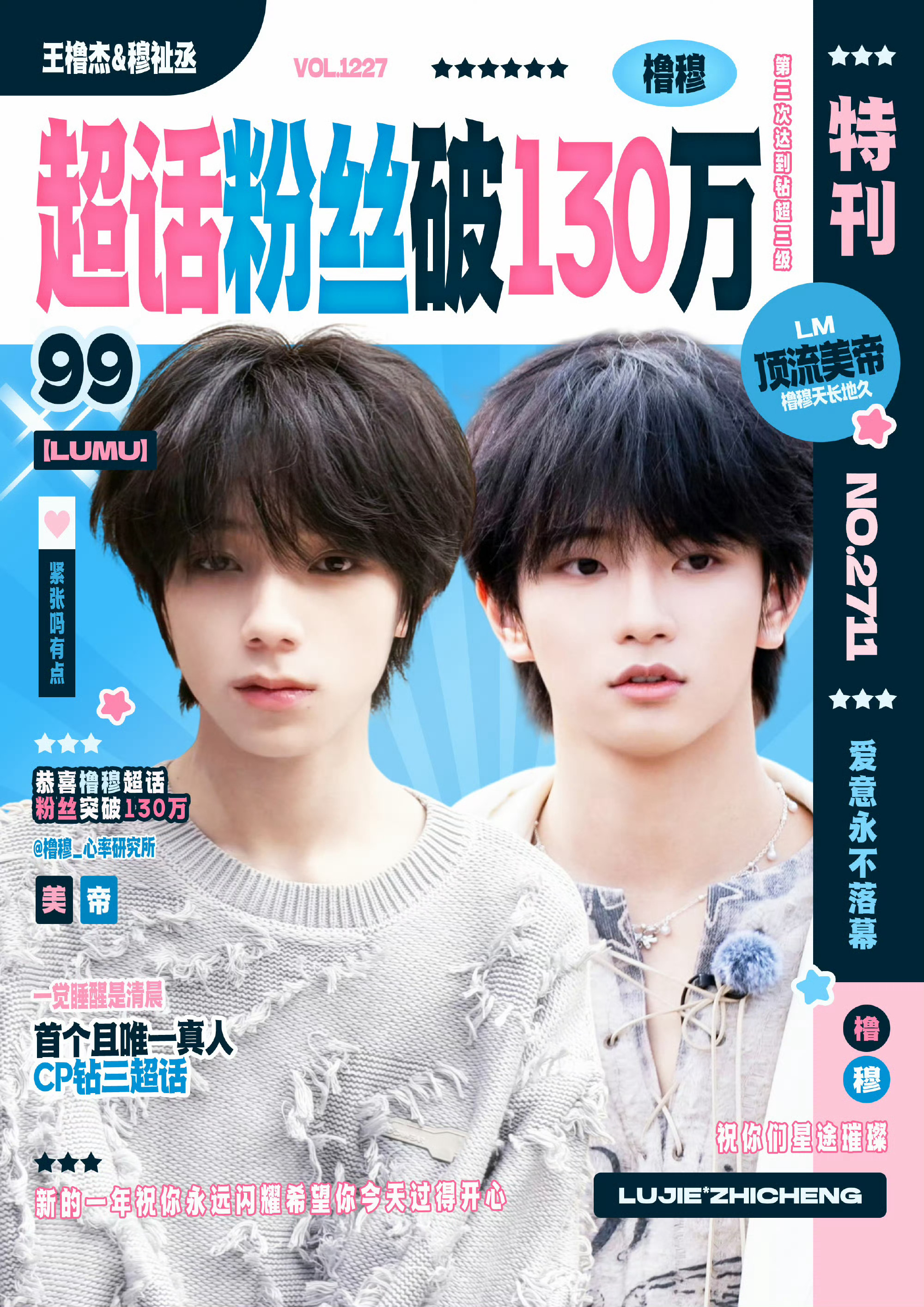 橹穆超话破130万粉丝橹穆超话已经破130万粉丝,首个且唯一真人cp钻三超话?
