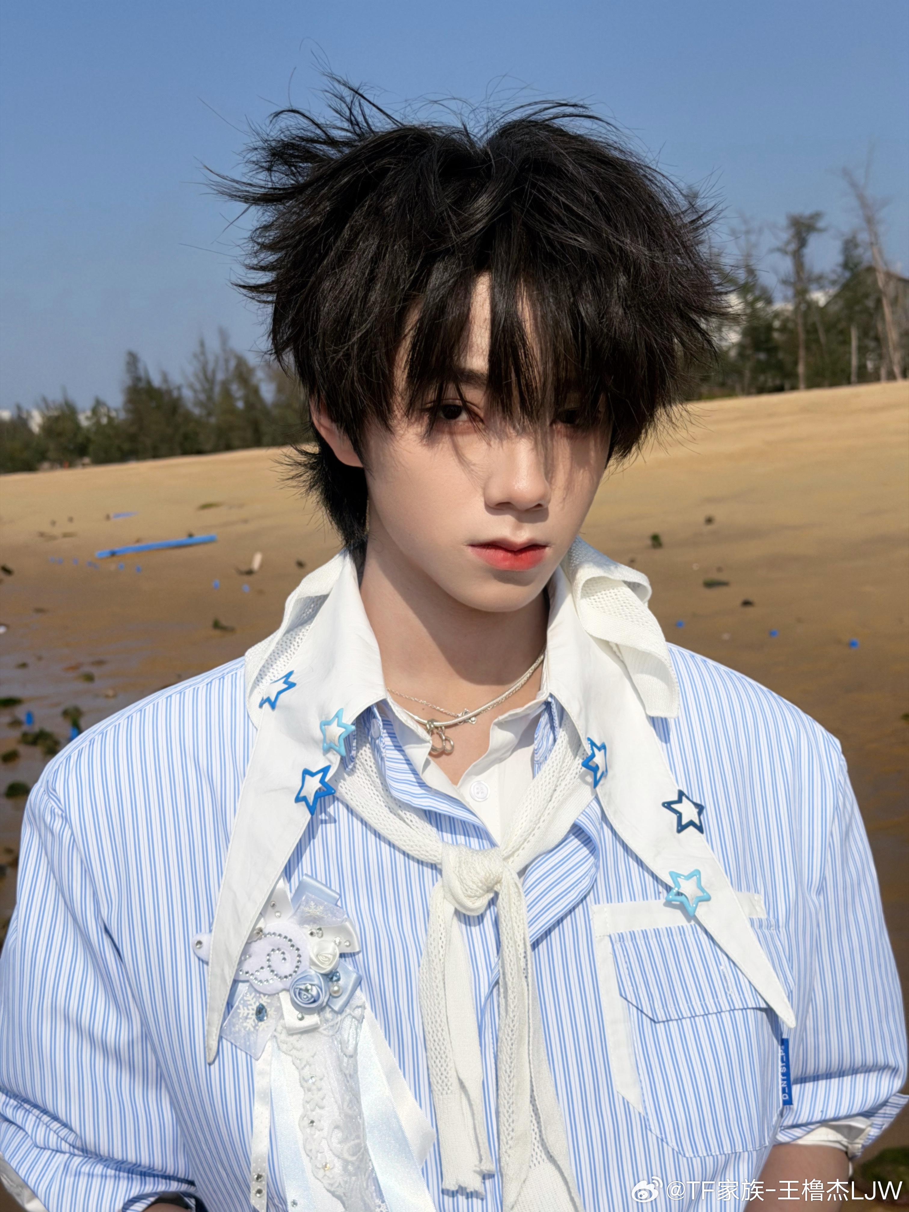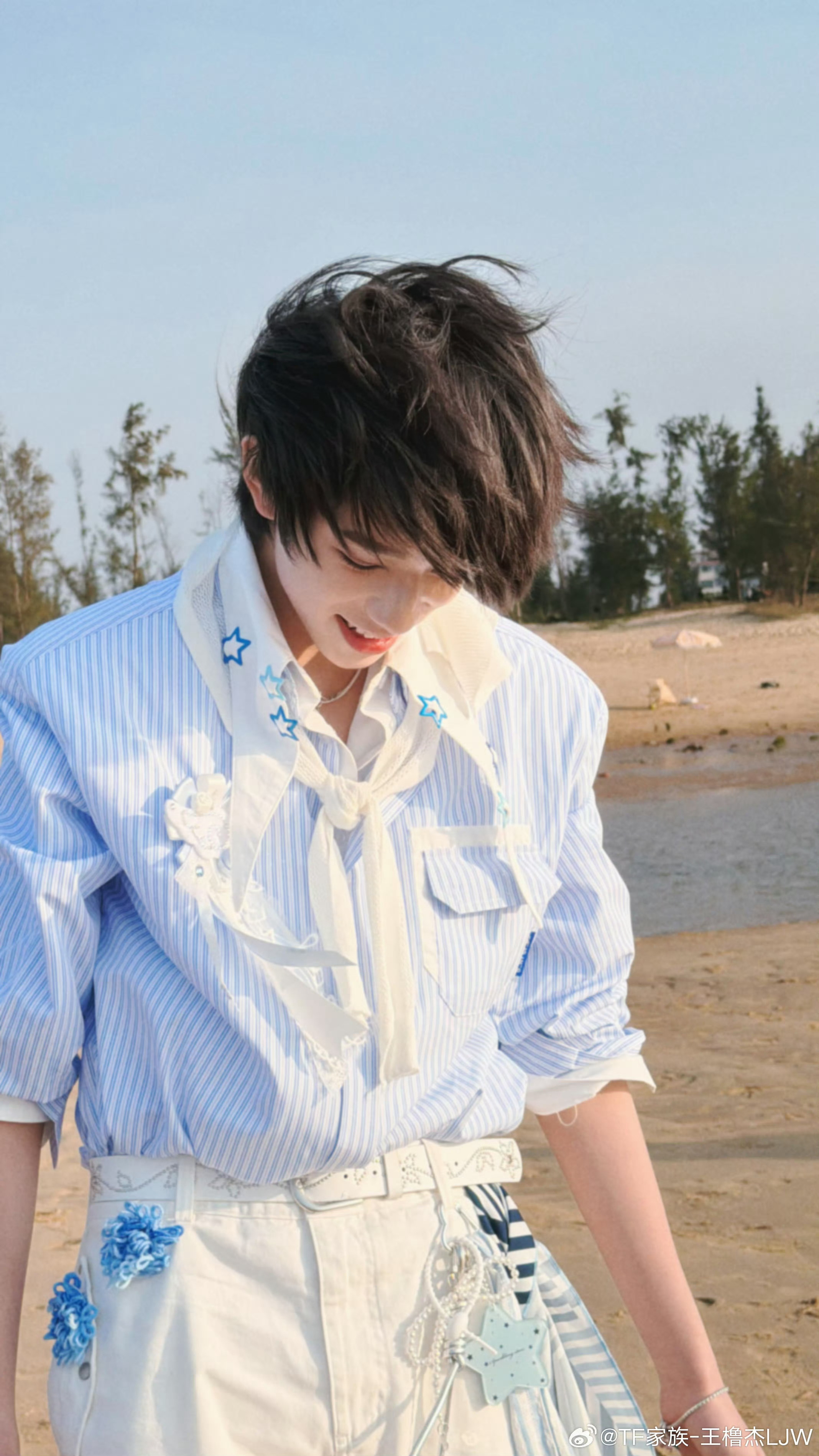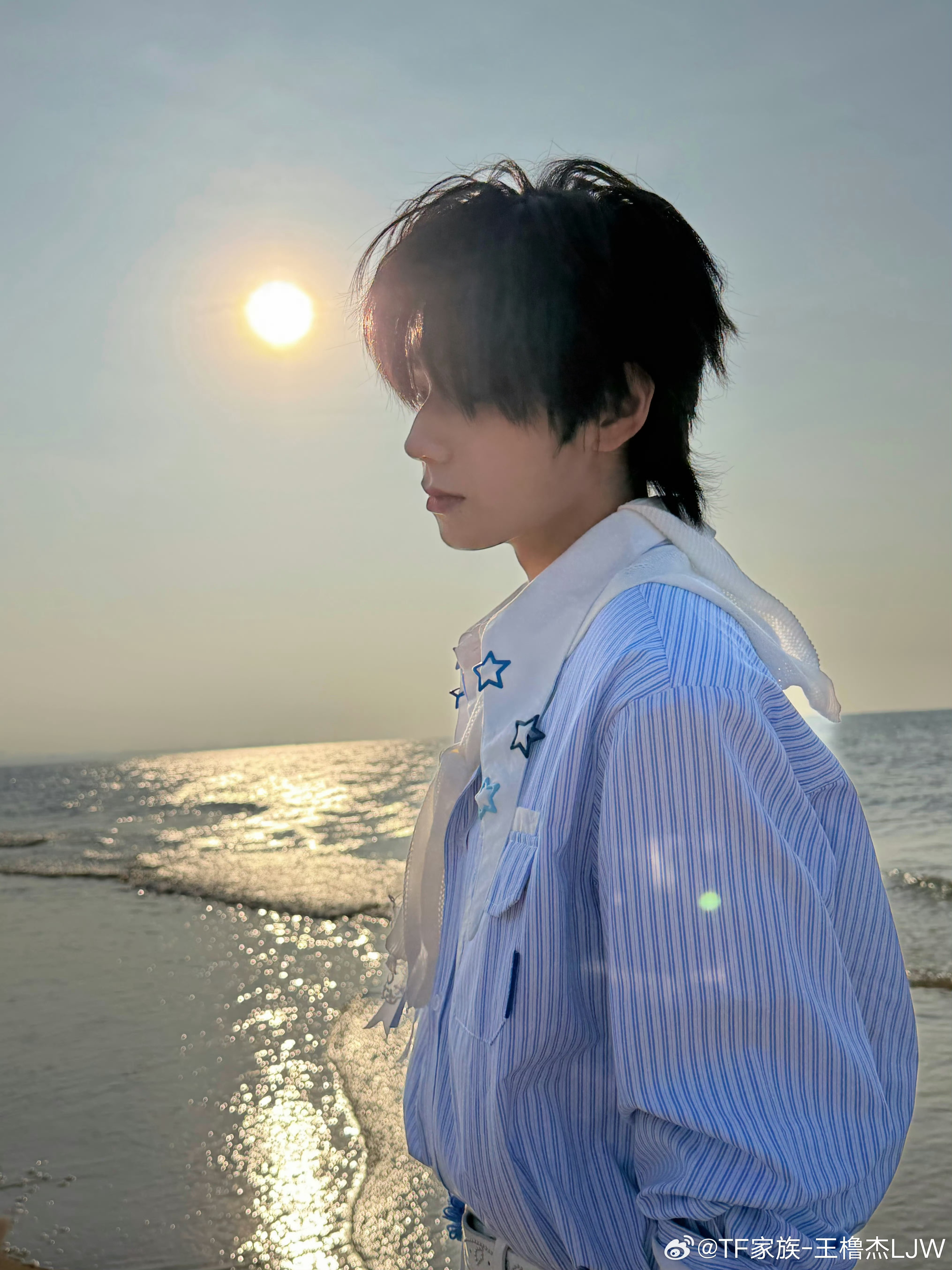 王橹杰海边少年写真这是什么从漫画里走出来的海风少年啊!!🌊眉眼清冷干净,逆光侧颜帅炸了海边的王橹杰自带柔光滤镜✨王橹杰逆光侧颜