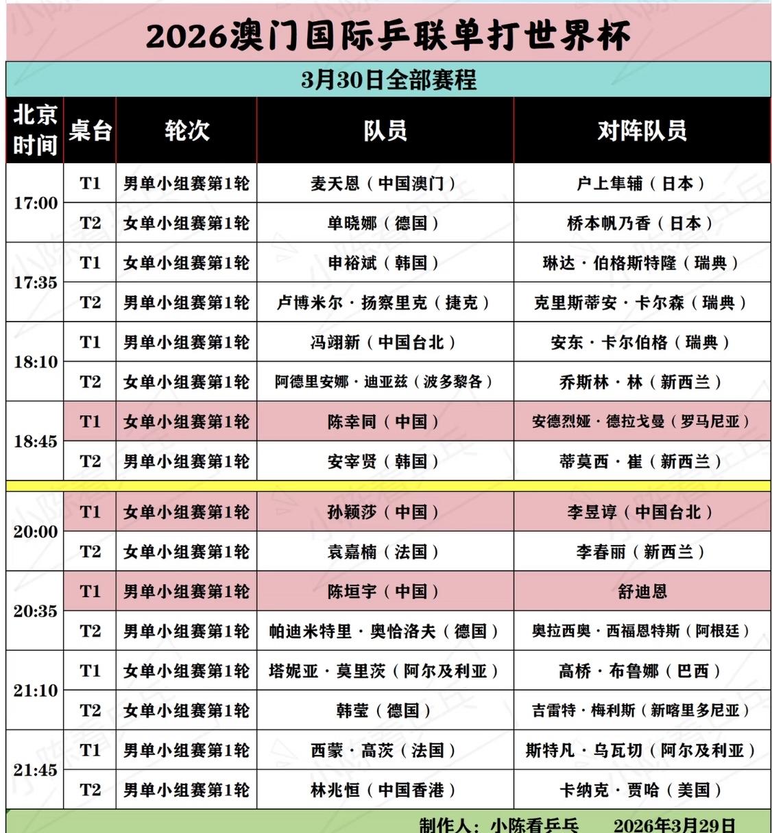 世界杯晚宴结束孙颖莎手拿公仔🧸笑的开心! 3月29日,国乒出席2026澳门世界杯赛前晚宴! 王楚钦与牛冠凯边走边聊, 孙颖莎与何卓佳 ,覃予宣互相 欣赏主办方赠送的公仔🧸, 王艺迪和好朋友杜凯琹搞怪合影, 王曼昱与迪亚兹聊的开心, 3月30日赛程出炉, 一起为国乒加油!