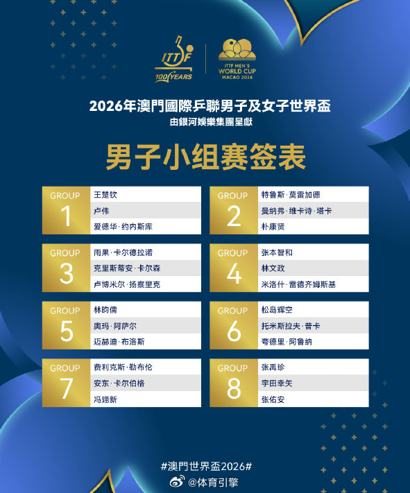 新鲜出炉的澳门世界杯男单分组,仔细看了看,感觉国乒男队这次小组赛就得绷紧弦了!