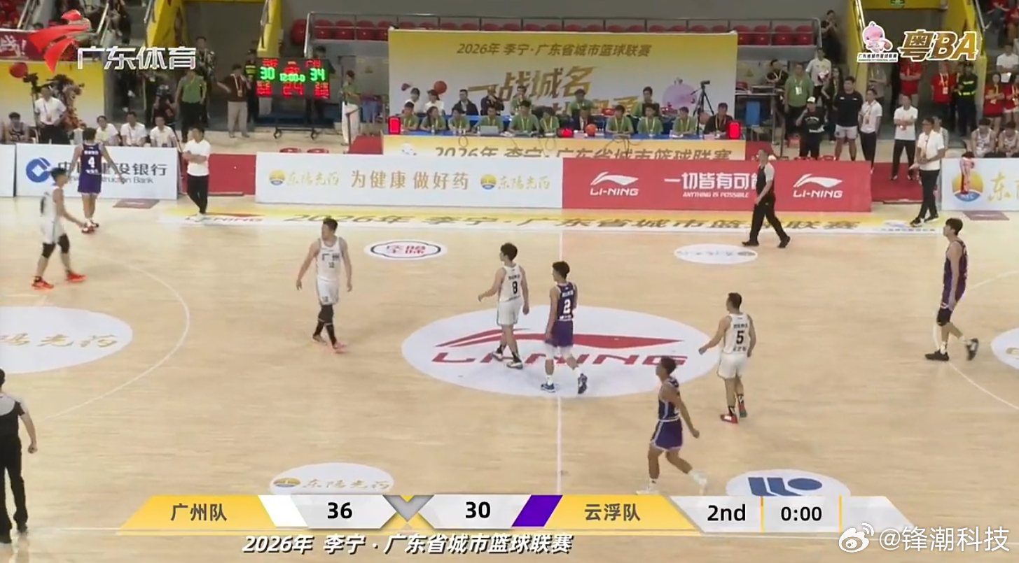粤BA 广东体育城市联赛 半场结束,广州36-30云浮,广州暂时领先。