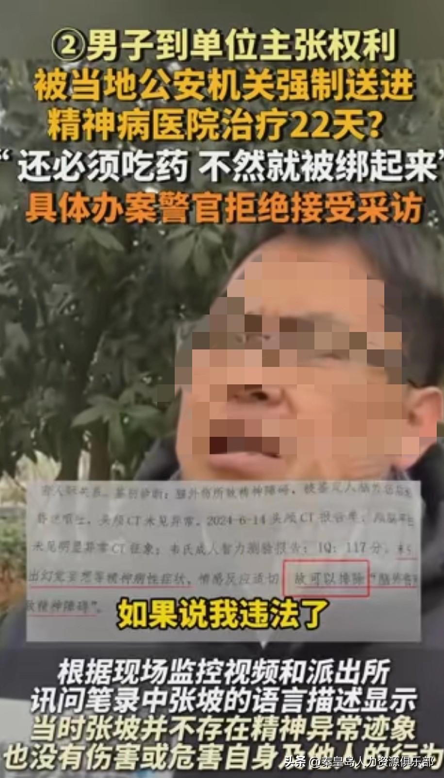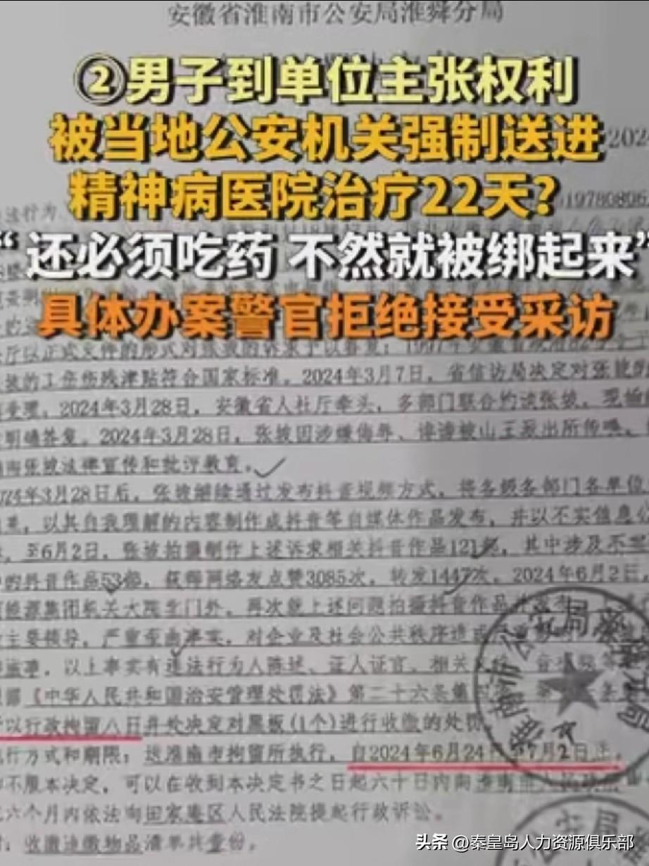 安徽有个哥们儿去单位要说法,结果被当地公安直接送进精神病医院关了22天?还被逼着吃药,不吃就绑起来?这也太吓人了吧! 咱打工人平时最怕什么?不就是有理没处说、有事没人管嘛!这哥们儿至少敢去单位主张权利,结果倒好,直接被当成“精神病”处理,这操作简直离谱到家了。 再看看证据,监控和笔录都显示这哥们儿当时没精神异常,也没伤人或闹事。那凭啥说送就送?22天啊!一个人要是真没病,被关在精神病院里,那是多大的心理折磨?万一真给整出点毛病来,谁来负责? 咱们打工人挣点钱不容易,最怕的就是遇到这种不讲理、不走程序的“硬核操作”。你说你要真违法,该罚罚、该拘拘,但得讲法、讲理、讲证据啊!不能一句话就给扣帽子,还关进医院,这跟电视剧里的剧情似的,现实里可不能有这种事! 希望能赶紧给个说法,该道歉道歉,该赔偿赔偿,别让打工人觉得“维权=挨整”。咱要的是公平,不是恐惧!这事儿要是就这么含糊过去,以后谁还敢站出来说话?大家都在评论区聊聊,你们怎么看?