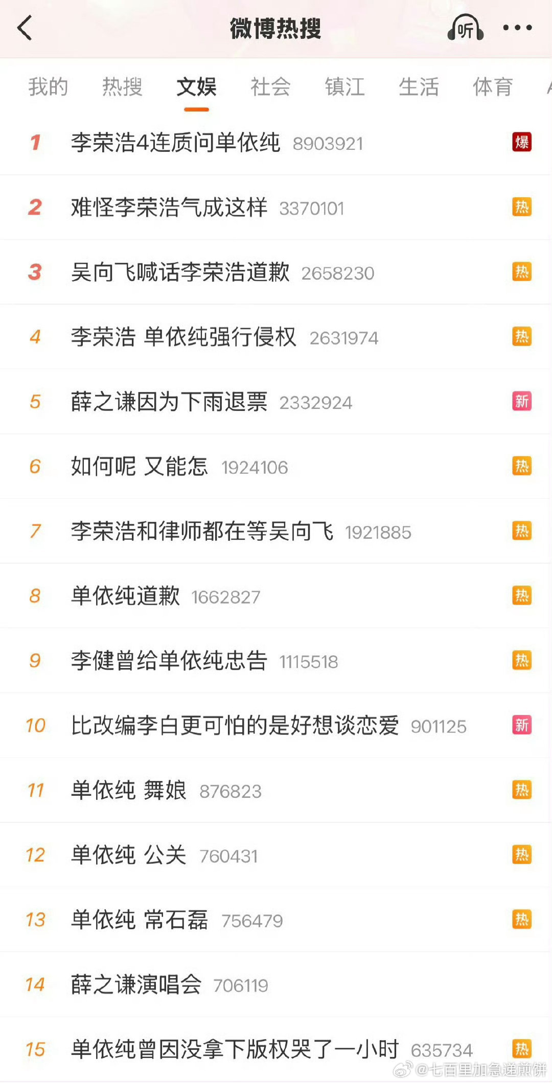 李荣浩:火力全开(哐哐哐发了五六条微博)李荣浩工作室:支持他(就发了一条转发)上