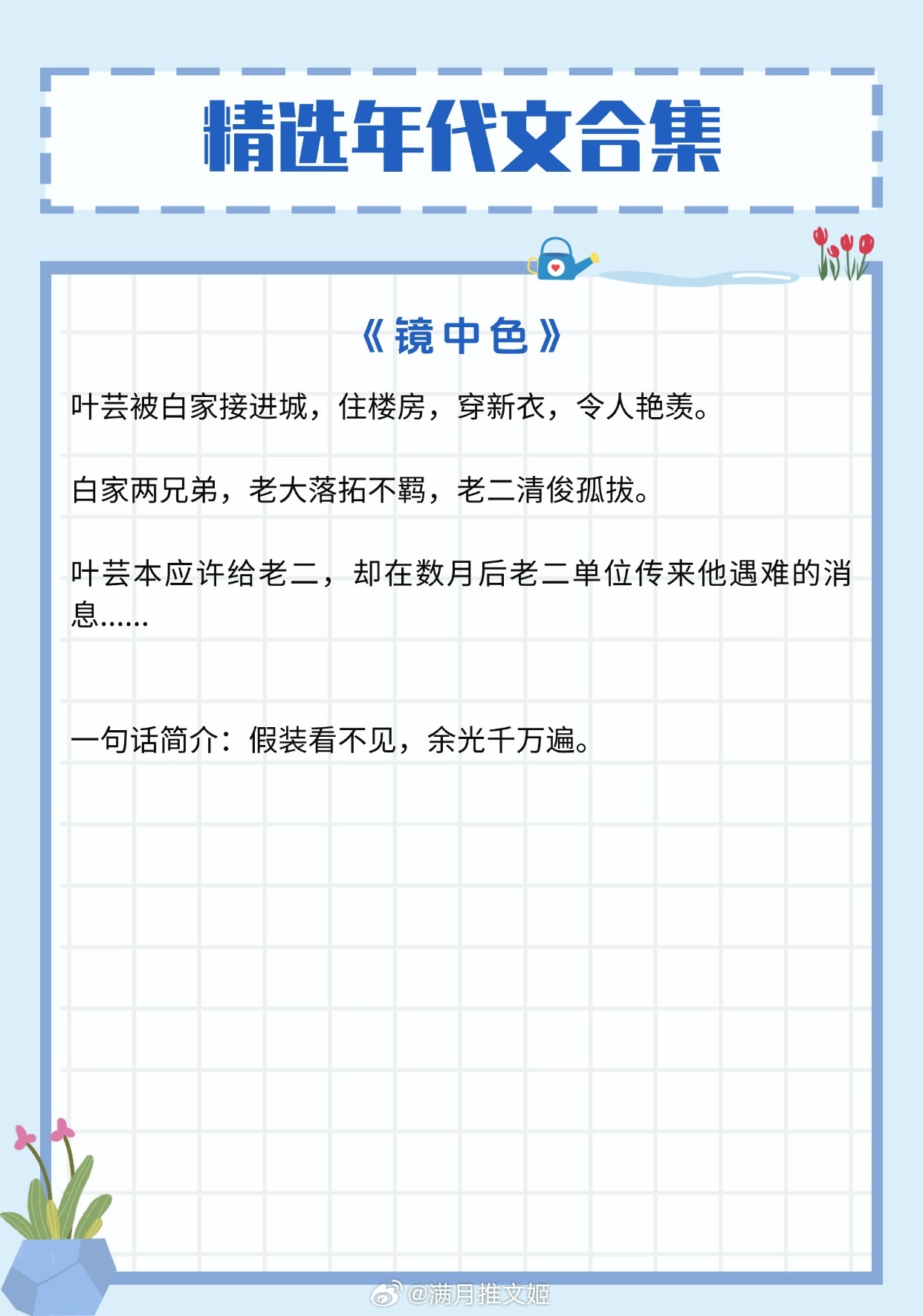 《八零孕肚进京:被高冷前夫亲晕了》作者:青阁酱《年代文炮灰女配认错男主后》作者:柠檬九《年代文大佬的漂亮小娇妻》作者:刺棠(《六零年代漂亮作精》)《七零女配幸福指南》作者:舒书书《娇小姐与真少爷》作者:金湘吾《镜中色》作者:时玖远推文推文言情小说推荐