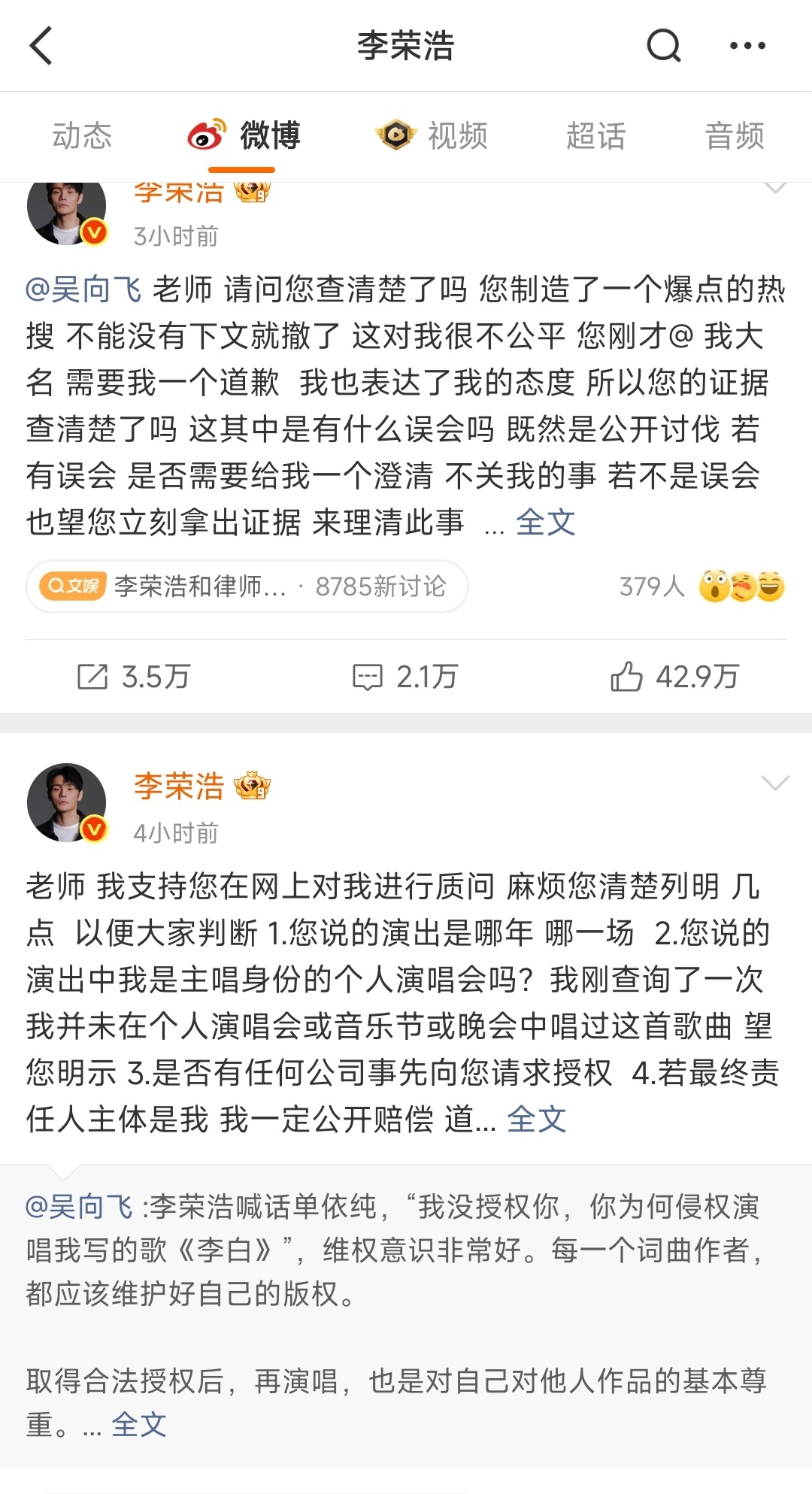 李荣浩今天这波真的硬啊!先是直接甩中国著作权协会的官方确认邮件,正面硬刚侵权演唱