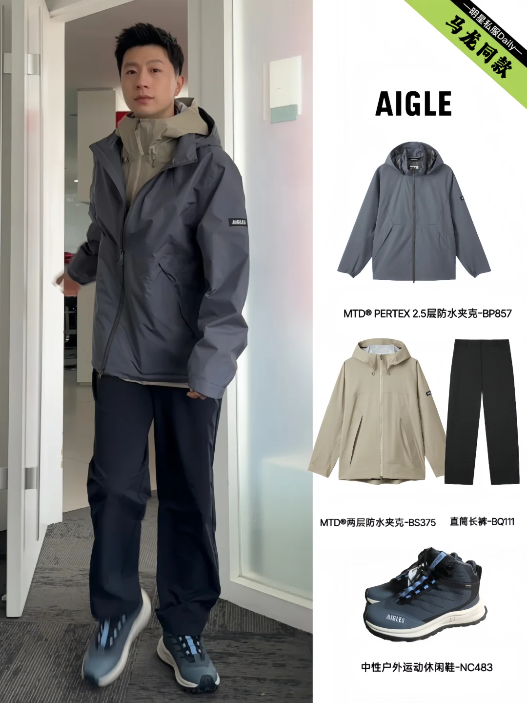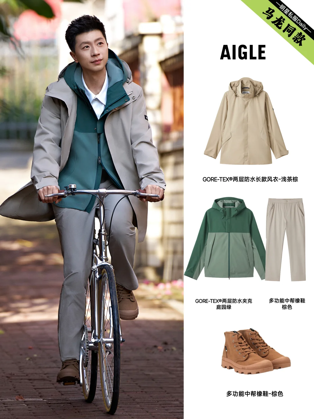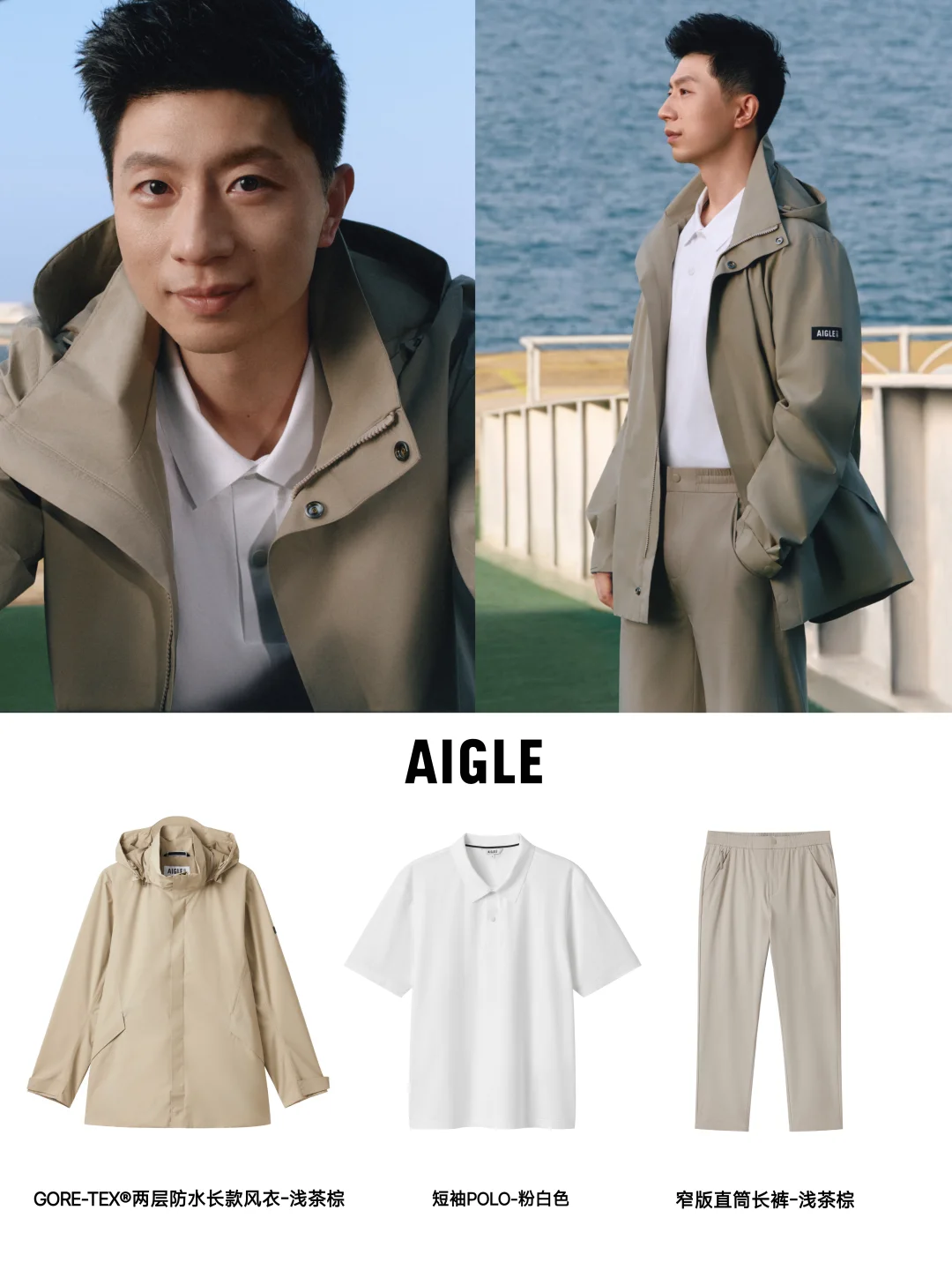 刷到马龙又解锁一新代言,正式官宣AIGLE品牌代言人,不得不佩服龙队啊,也是天生的时尚icon, 行走的衣架子,对于日常热爱旅行的他来说,和AIGLE简直太适配了——这个法国百年户外时尚品牌,用专业装备守护旅途,主打从城市轻户外到旅行户外的多场景穿搭。 官宣海报也是被帅一脸,卡其色风衣夹克搭配同色系直筒长裤,高级感拉满,其实龙队私下也很爱穿AIGLE,看他的滑雪服和赛车时穿的私服都是来自这个品牌~
