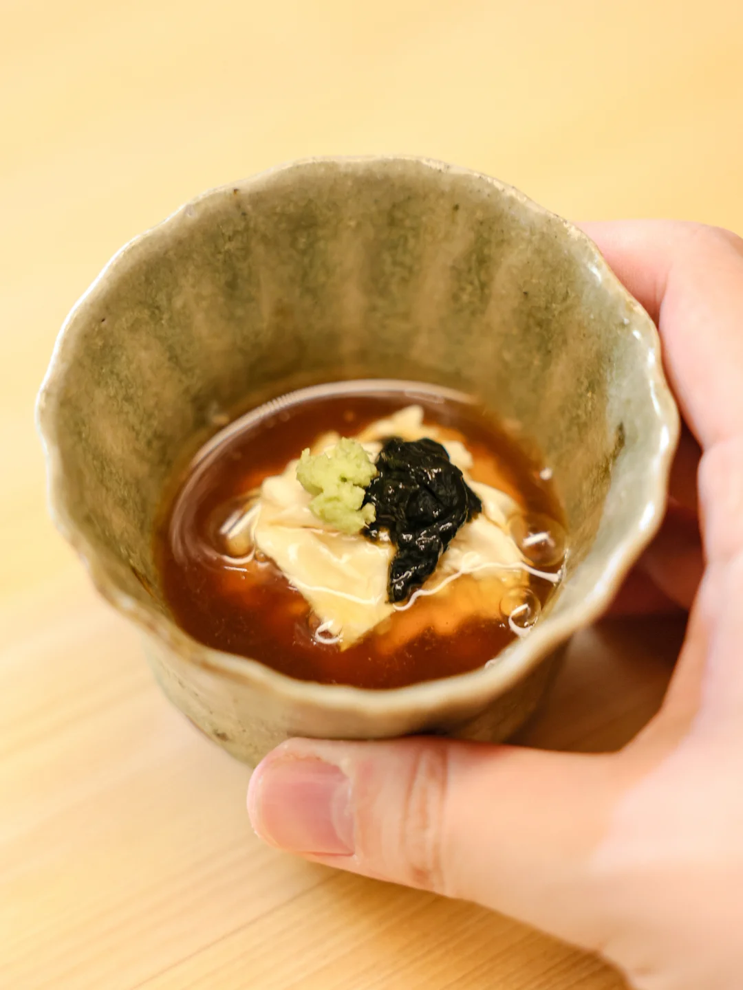 搅匀之后层次则会不同一点:混合了海苔酱的咸鲜,再带出一股山葵微妙的辛辣刺激,日式表达一层接一层,但更为曼妙的是食材本身作为豆香表达。
