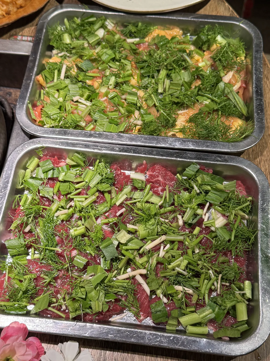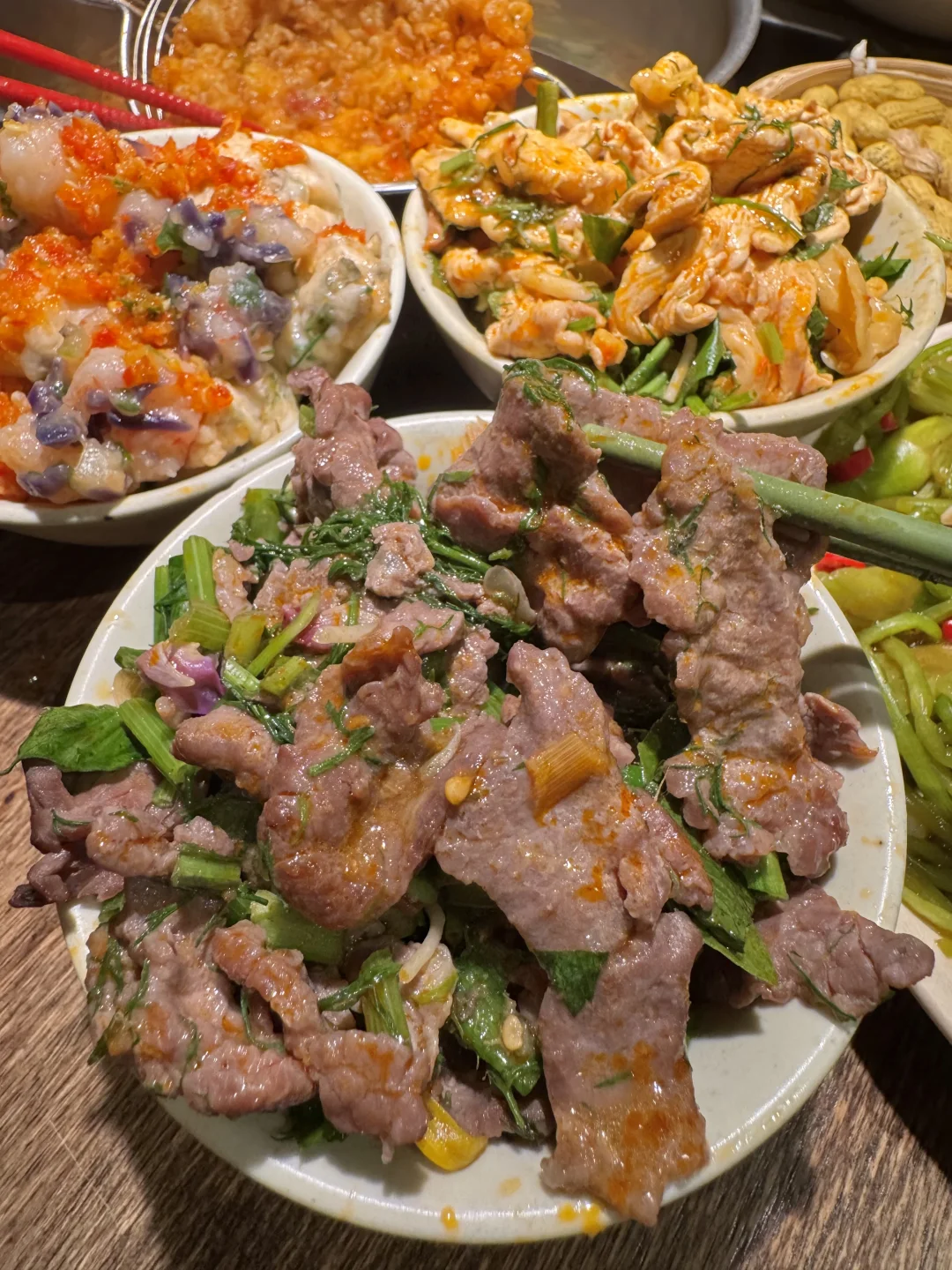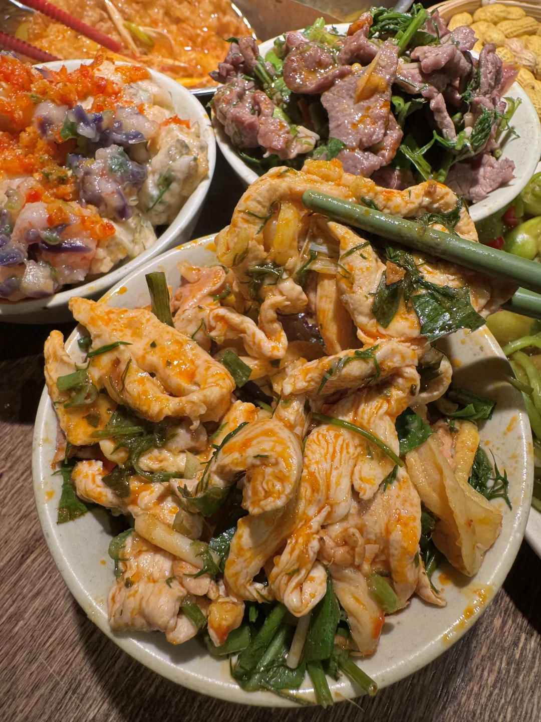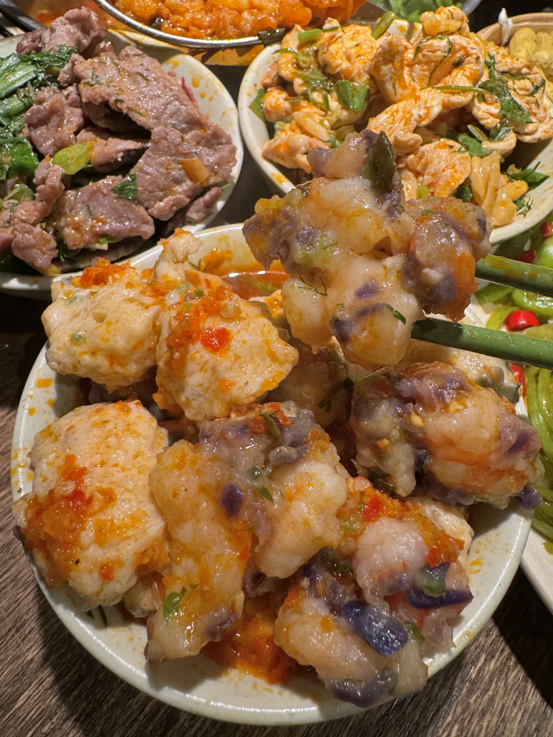 经常和朋友去吃的云南山野火锅 木质调很有sense,瓜果多多感觉到了西双版纳 春天院子里花开的正好,生机勃勃美呆了!! ✔️现舂野佐料锅底酸酸辣辣的,傣家鲜花锅底漂亮清新,涮寻甸黄牛肉very好吃!!!新出的春野繁花酿虾滑好吃,虾肉Q弹新鲜,花香很特别!!豌豆花鳕鱼滑好duang~ ✔️茴香菌菇炒饭喷喷香!!滇南糯叽叽青蛙趴石板又是没见过的小吃,很特色!!! ✔️抹茶椰子蛋、液体版芒果糯米饭…满意满意!!!