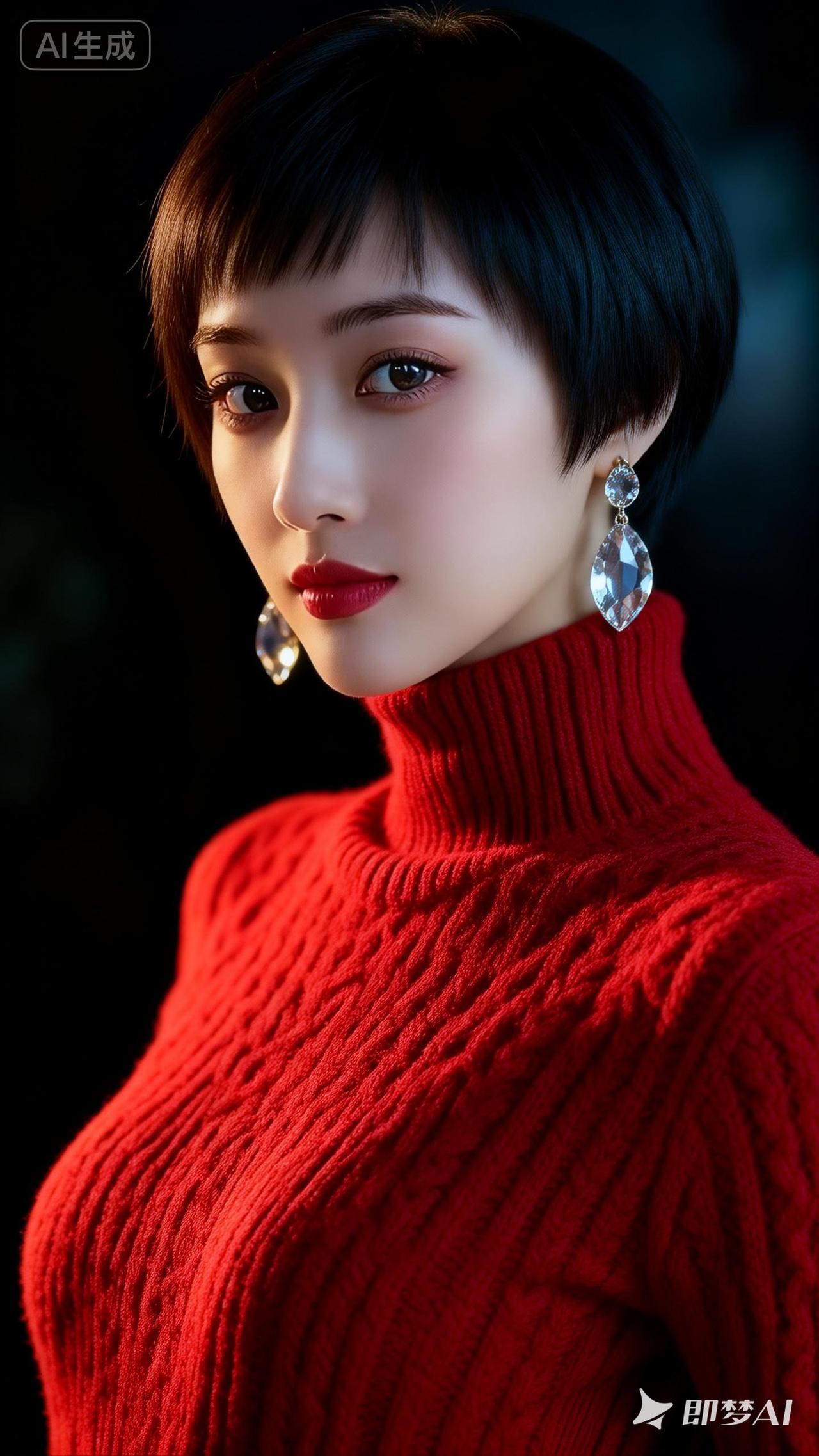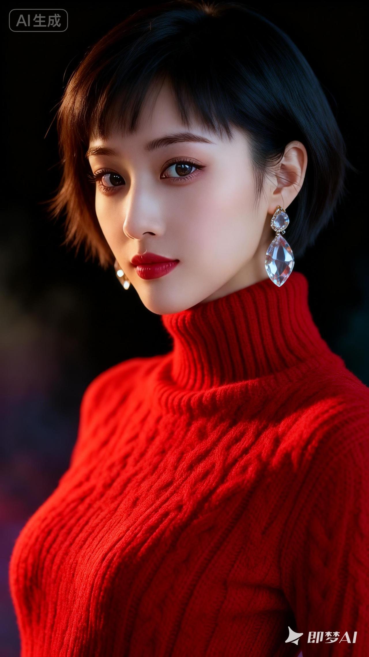 冷艳红衣女郎,闪耀耳环点缀,气质满分!