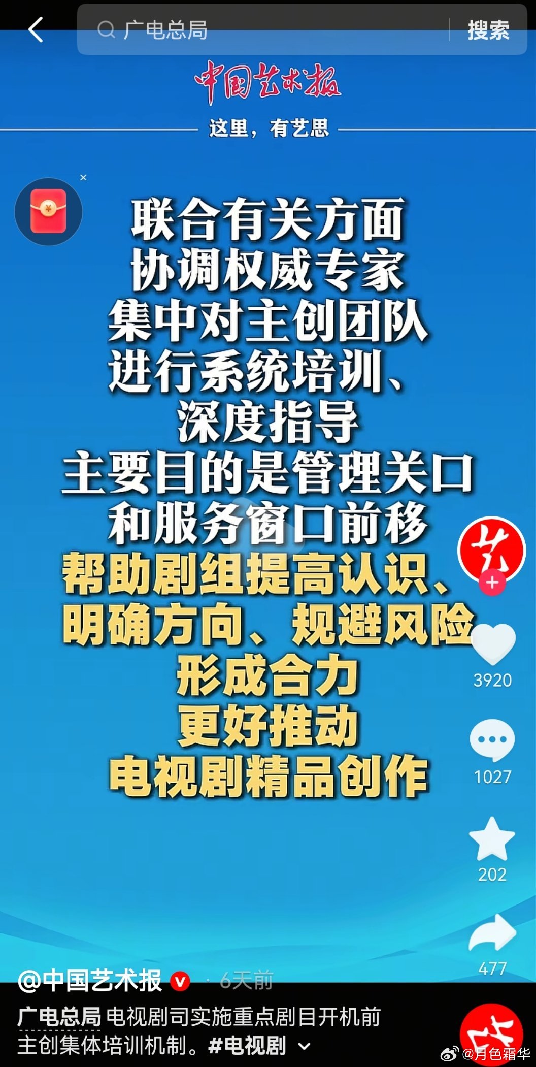 写得挺好,执行的时候又变成个给二代开绿灯,卡没后台的。这帮人真的能办事,也不会搞个电视剧low到军方看不下去下场批了,自己是没点数吗? 只有程序员和护犊子大佬把电视电影全毁了,干这个不挣钱了,硬捧的流量和丑二代才会彻底滚出娱乐圈,正真会创作会演戏的人才会出头。