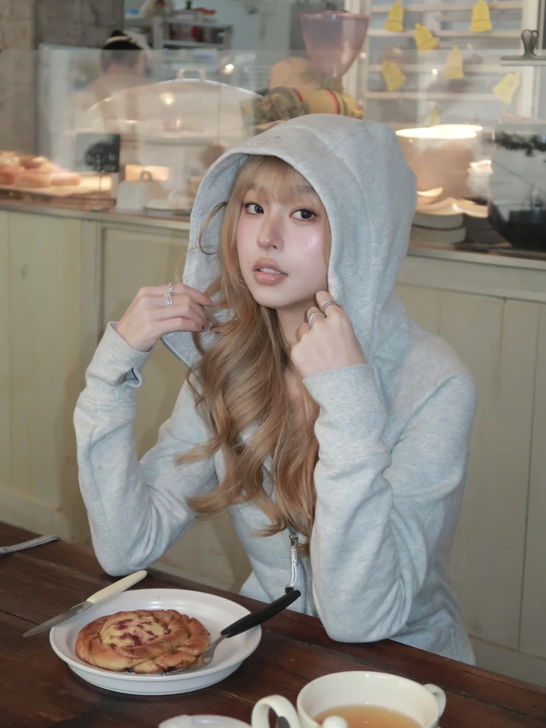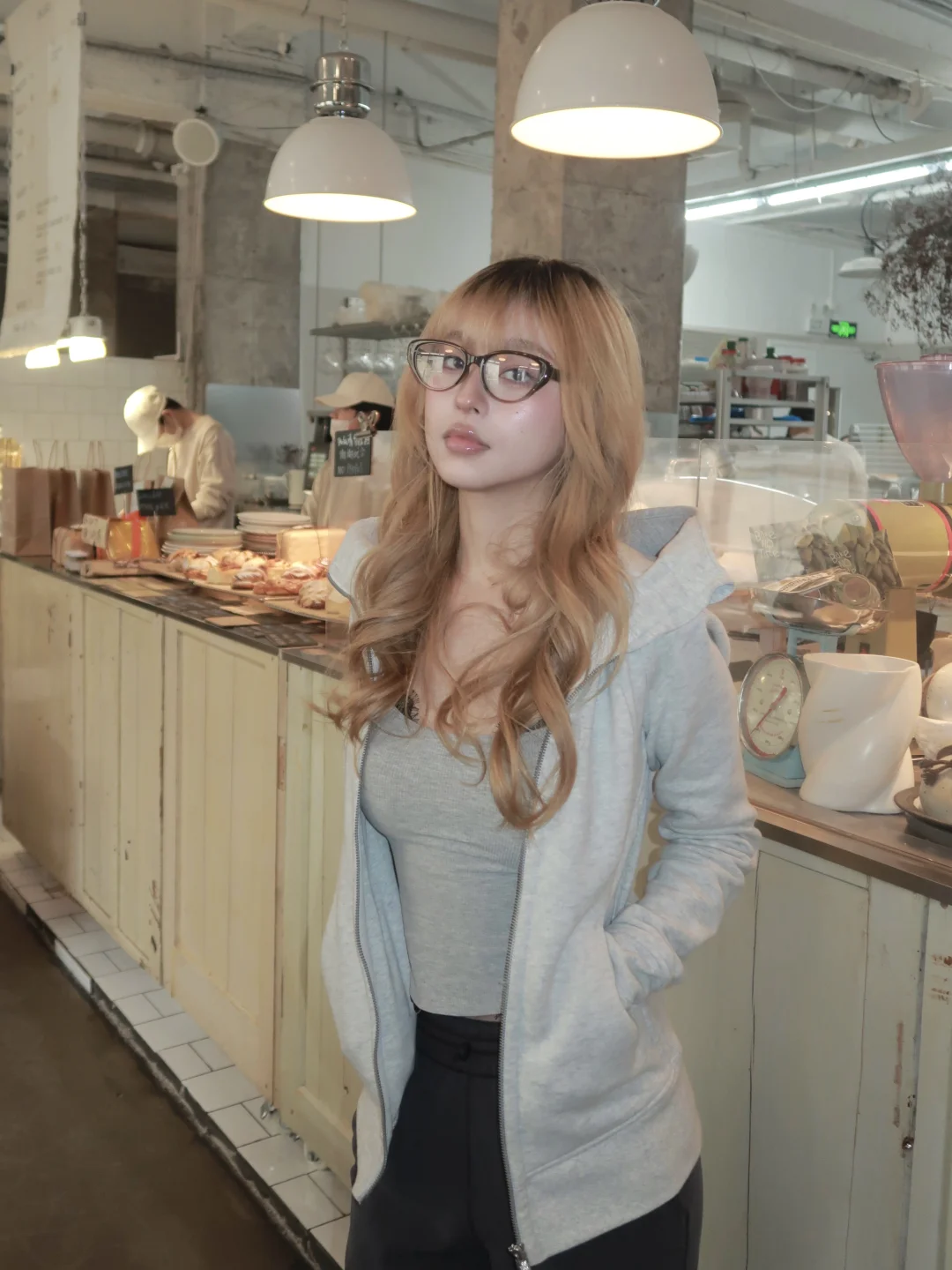 工作汇报没写完来喝杯咖啡 喜欢的灰色卫衣要多穿穿 最近又重新迷上hot nerd风 一定要戴眼镜才是吗btw