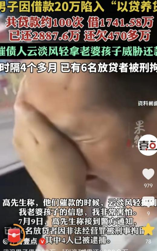 湖北武汉,一男子急需用钱,就贷 款20万,约定6个月偿还,不料,他贷 款当天,就被催还首期款4.1万,贷款期满,他没钱可还,只能“以贷养贷”,陷入恶性循环,共贷款100多次,贷了1741.58万,已还2887.6万,还差470多万,砸锅卖铁说啥都还不起了,对方拿他的老婆孩子威胁,男子崩溃了,愤怒报了警,结果出乎意料。 湖北武汉的高先生经营着一家小型二手家电回收厂,2023年10月因货物积压、生意亏损,加上征信逾期无法从正规渠道贷款,急需资金周转的他,接到了一通陌生的贷款推销电话。 对方承诺无抵押、低息、快速放款,走投无路的高先生当即决定贷款20万,约定6个月偿还, 可贷款刚到账高先生就掉进了精心设计的陷阱,20万的贷款,实际到账仅18.8万,1.2万被以“砍头息”和手续费的名义直接扣除。 更离谱的是,贷款当天他就被催收人员要求偿还首期款4.1万,一番折腾下来,20万贷款他真正能支配的资金只剩14.7万,连基本的生意周转都不够。 6个月贷款期满,高先生根本拿不出钱偿还,放贷者没有丝毫通融,反而“贴心”地给他介绍了同栋楼里的其他放贷者,让他借新款还旧款。 就这样高先生被迫踏上了“以贷养贷”的不归路,陷入了无法挣脱的恶性循环,这些放贷者看似各自独立,实则是同一团伙,他们在同一栋楼里反复给高先生放款,用新债填旧债,债务像滚雪球一样越滚越大。 在接下来的一年多时间里,高先生累计贷款100多次,合同借款金额高达1741.58万,可实际到手的钱远低于这个数,每一笔贷款都被扣除高额的砍头息、手续费,警方核算后发现,这些贷款的平均利息比国家规定最高标准高出500多倍。 为了填这个无底洞,高先生砸锅卖铁,卖了车、卖了房,还向亲朋好友借了几百万,前前后后实际还款总额达到2887.6万,远超他所有贷款的本金总和。 可即便如此2025年2月底,放贷团伙算账后仍告知他,还欠470多万元债务,当高先生表示实在无力偿还时,催收人员开始用软暴力威胁。 不仅频繁骚扰他,还精准说出他妻子的工作单位、孩子的就读学校,以家人安全相逼,让他继续还款,多年的积蓄化为乌有,家庭被债务压得喘不过气,还时刻面临家人被威胁的恐惧,高先生彻底崩溃。 2025年2月22日,他鼓起勇气向武汉唐家墩派出所报警,揭露了这起套路贷骗局, 报警后的结果出乎高先生的意料,也让这起恶性套路贷案件迎来了转机。 警方接到报案后迅速介入调查,核实了高先生提供的数百份借款合同、转账记录等证据,确认这是一个有组织的非法放贷团伙,通过砍头息、虚增债务、以贷养贷等手段实施套路贷,涉嫌非法经营等犯罪。 在警方的压力下其中两名放贷者先向高先生退还了170万元,他的剩余欠款降至300多万元,2025年7月9日高先生接到警方通知,涉案的6名放贷者已全部因非法经营罪被刑事拘留,其中4人被正式逮捕。 从急需20万周转资金到陷入千万债务深渊,高先生的遭遇是无数被套路贷坑害者的缩影。 他用自己惨痛的经历警示所有人,远离无抵押、低息等噱头的非法贷款,一旦遭遇砍头息、暴力催收等套路贷行为,一定要第一时间保留证据并报警,用法律武器维护自身权益,切勿因恐惧陷入以贷养贷的死循环。