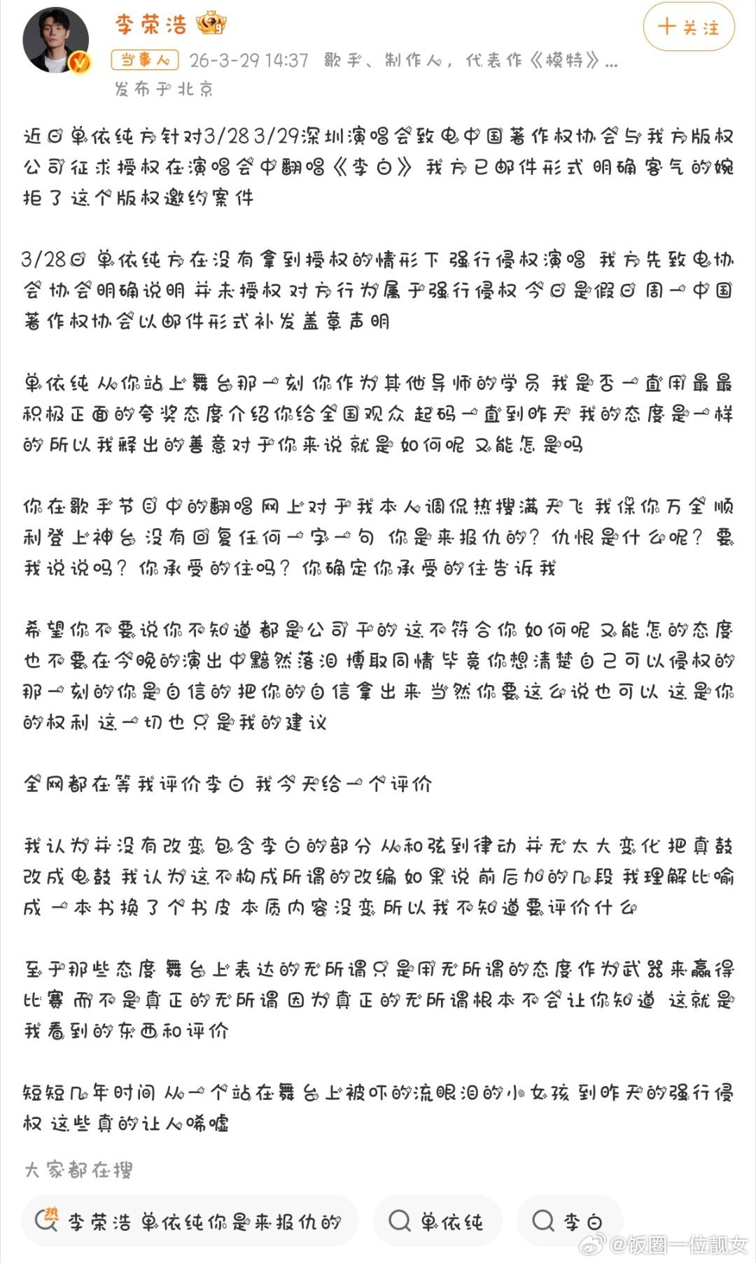 李荣浩开撕单依纯,感觉事情没那么简单。。。坐等态度姐回应。。。