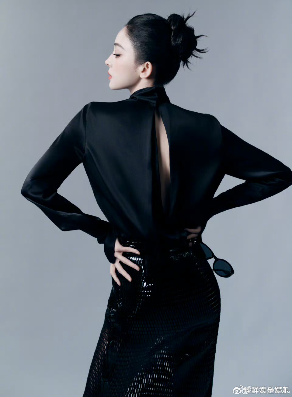 娜扎今日look黑蛇纹裙自带野性滤镜!娜扎利落盘发+红唇,冷艳与性感双杀,生图直出都抗打✨娜扎黑色蛇皮裙look