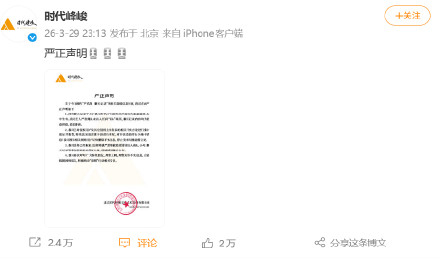 【时代峰峻辟谣网传严浩翔聊天记录】#严浩翔 聊天记录# #严浩翔分享歌曲# 3月29日晚,发布严正声明:#时代峰峻否认网传聊天记录#