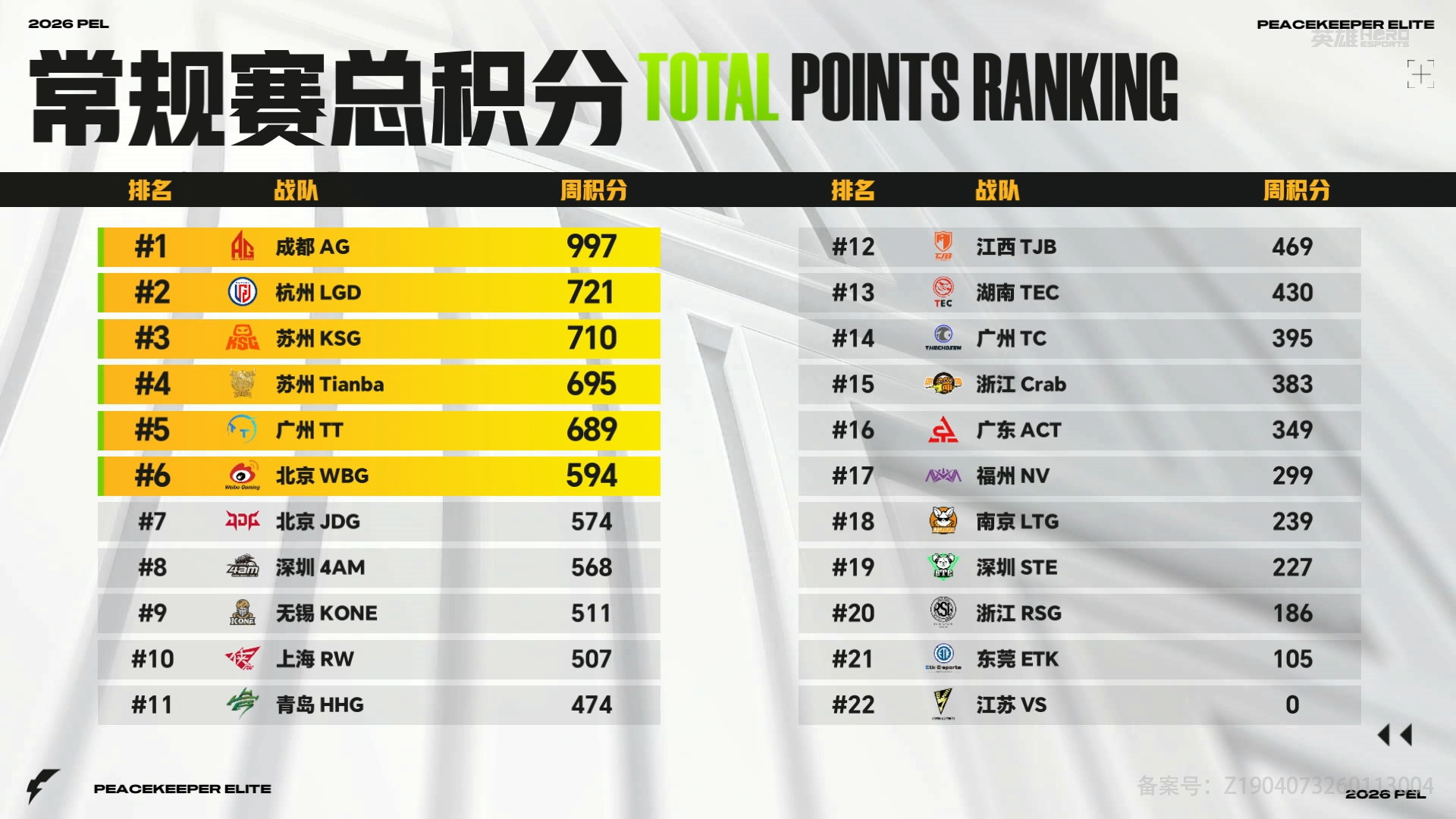 【2026 PEL 春季赛 常规赛总积分榜】Week6 Day4 LGD第六周周冠军LGD天周决赛MVP