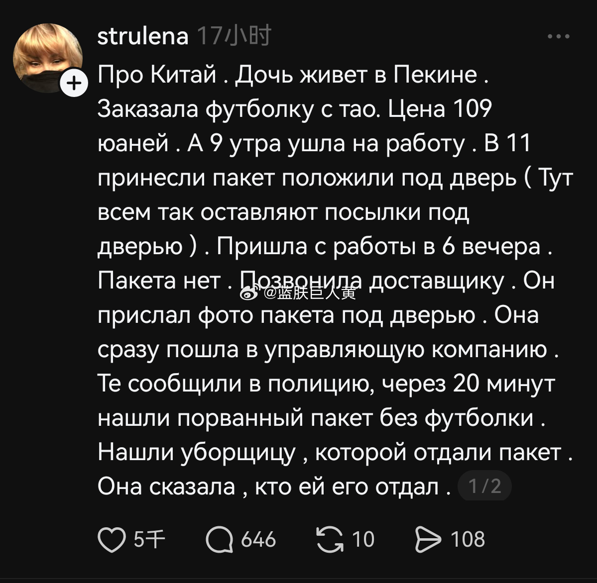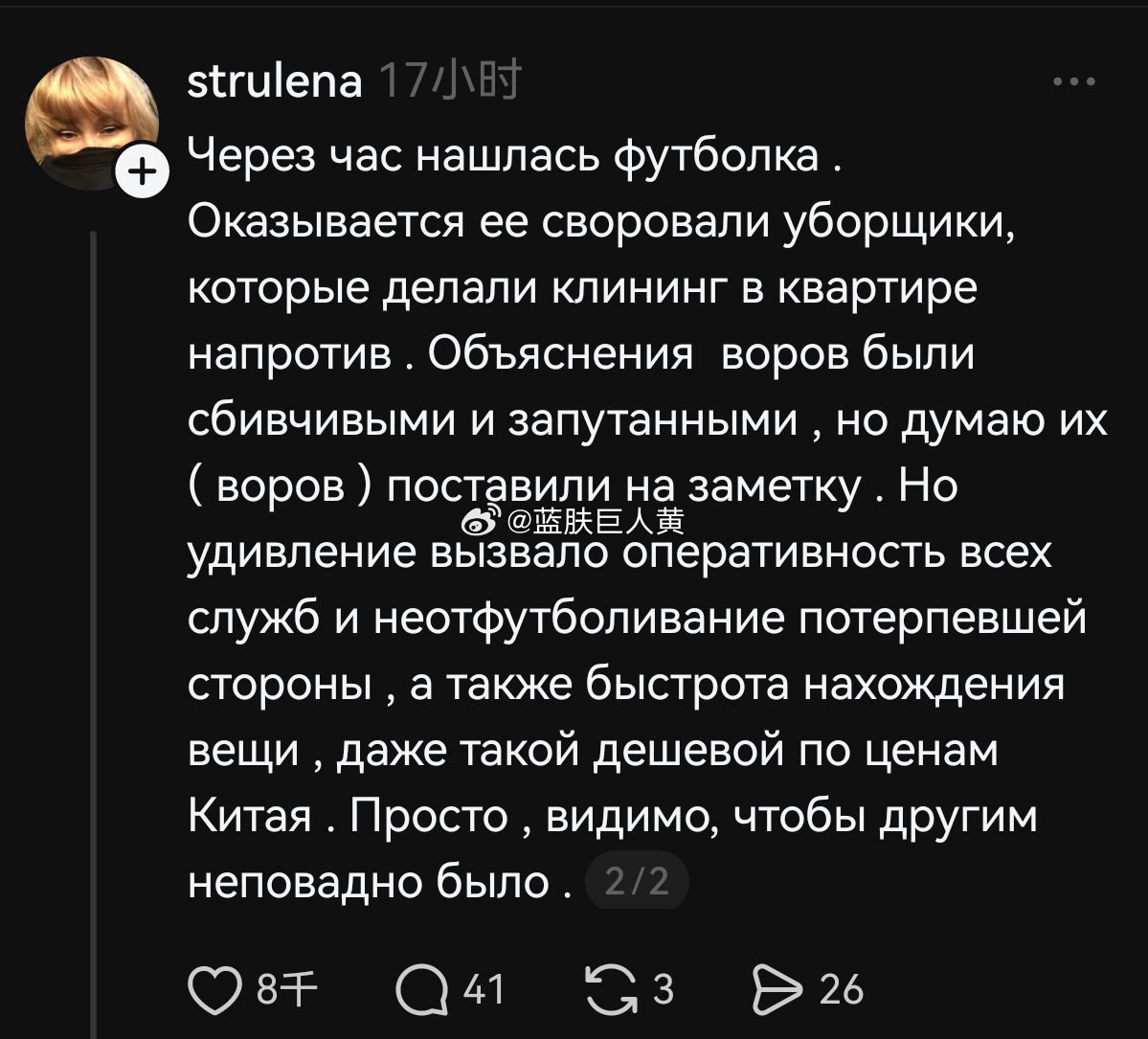 外网俄语热帖:一个俄国女孩丢了一件109块钱的t恤,却见识到了中国的办事效率