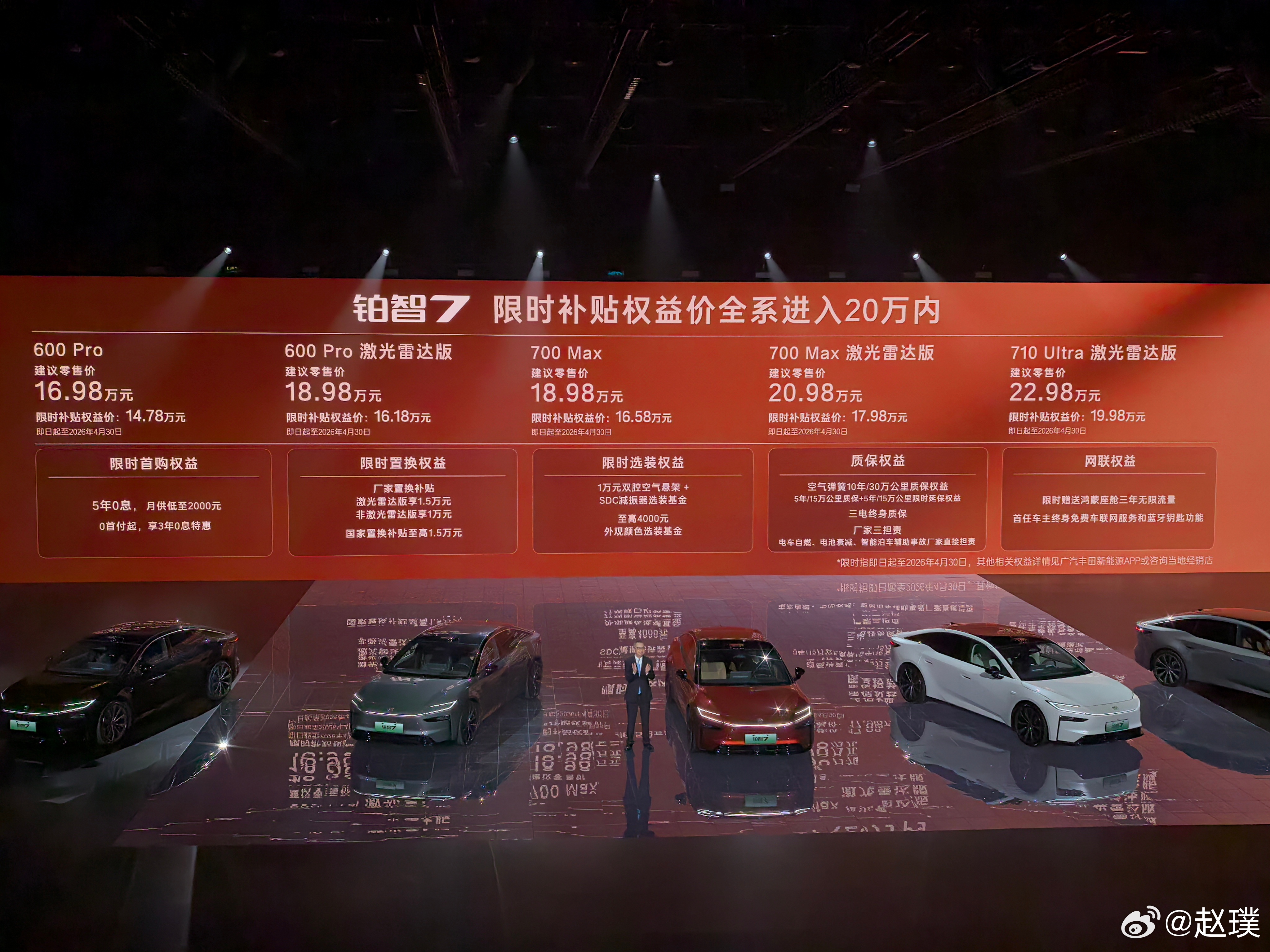 铂智7正式上市,售价区间16.98万-22.98万,同时空悬选装价只需5000元。