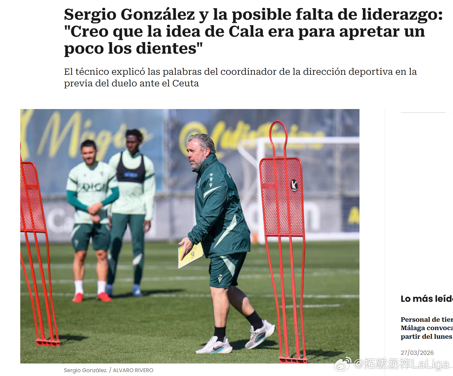 3.24日,加的斯体育总监胡安-卡拉面相媒体公开指责球队缺乏领导力。
