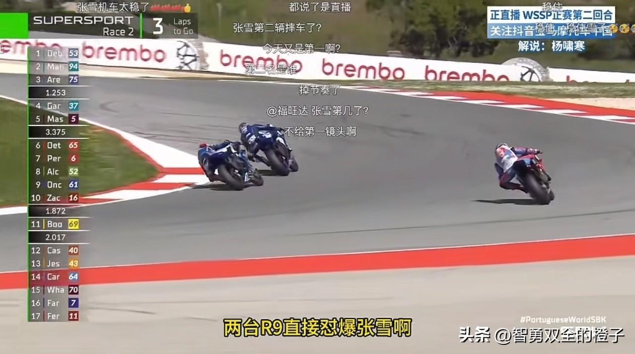 有惊无险!葡萄牙站第二回合,张雪机车820rr再次夺冠,要不是倒数第二圈那次失误,估计又得领先三四秒,不过最后直线生吃两台雅马哈r9,也挺让人解气的! 驾驶张雪820rr的车手德比斯,技术也挺厉害的,有胆魄,有技术,把820rr性能完美释放,好马配好鞍,好车配好将! 关键是这车才卖43800元,全场任意哪款车的价格,都是它的几倍,这还只是820rr,不是820rr高配150匹马力的那款,以前这个价钱只能买一个雅马哈r3。 要是用r3和同价位820rr干一下,估计套它两圈都够了,张雪机车牛逼,中国制造牛逼!