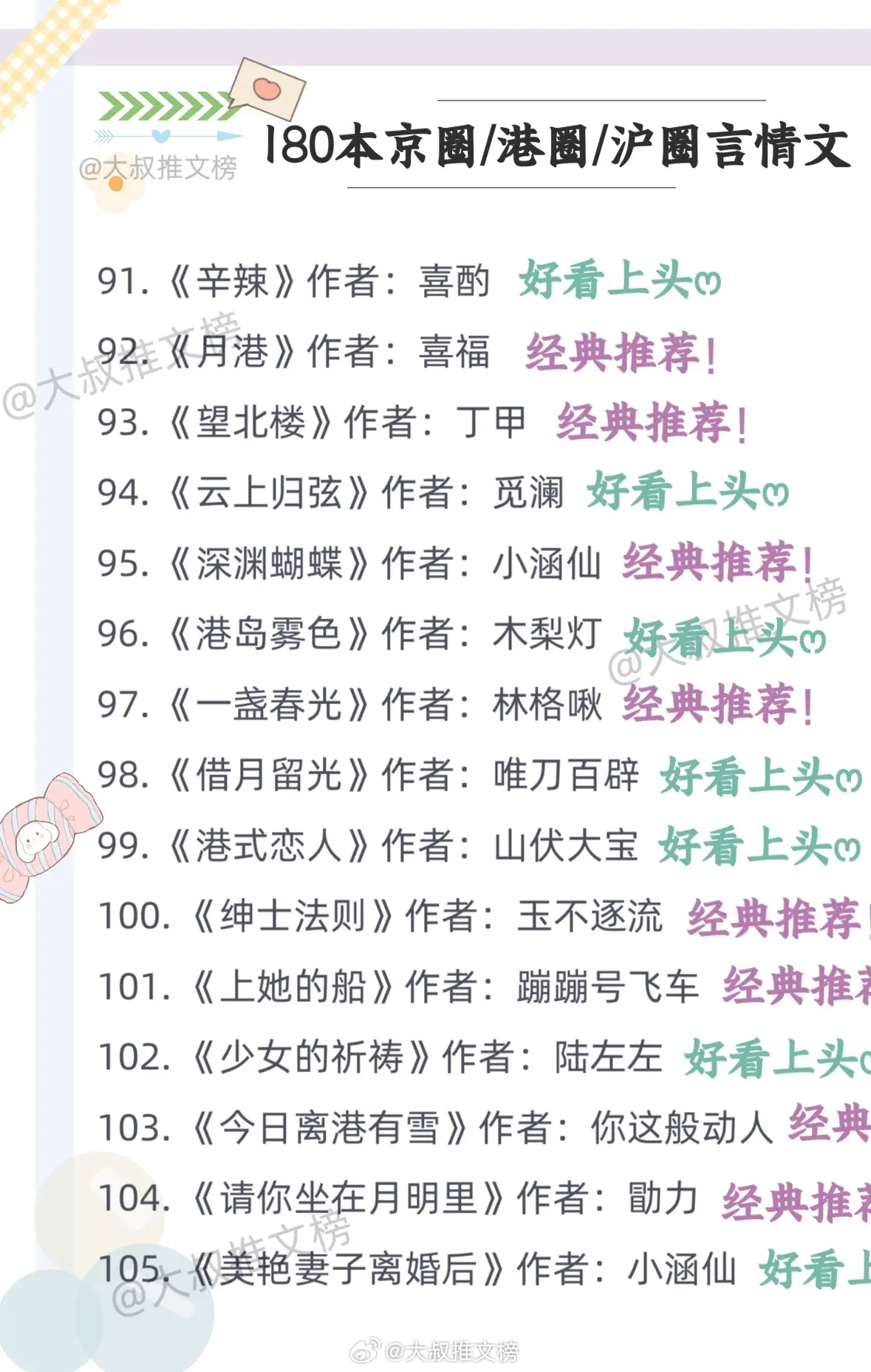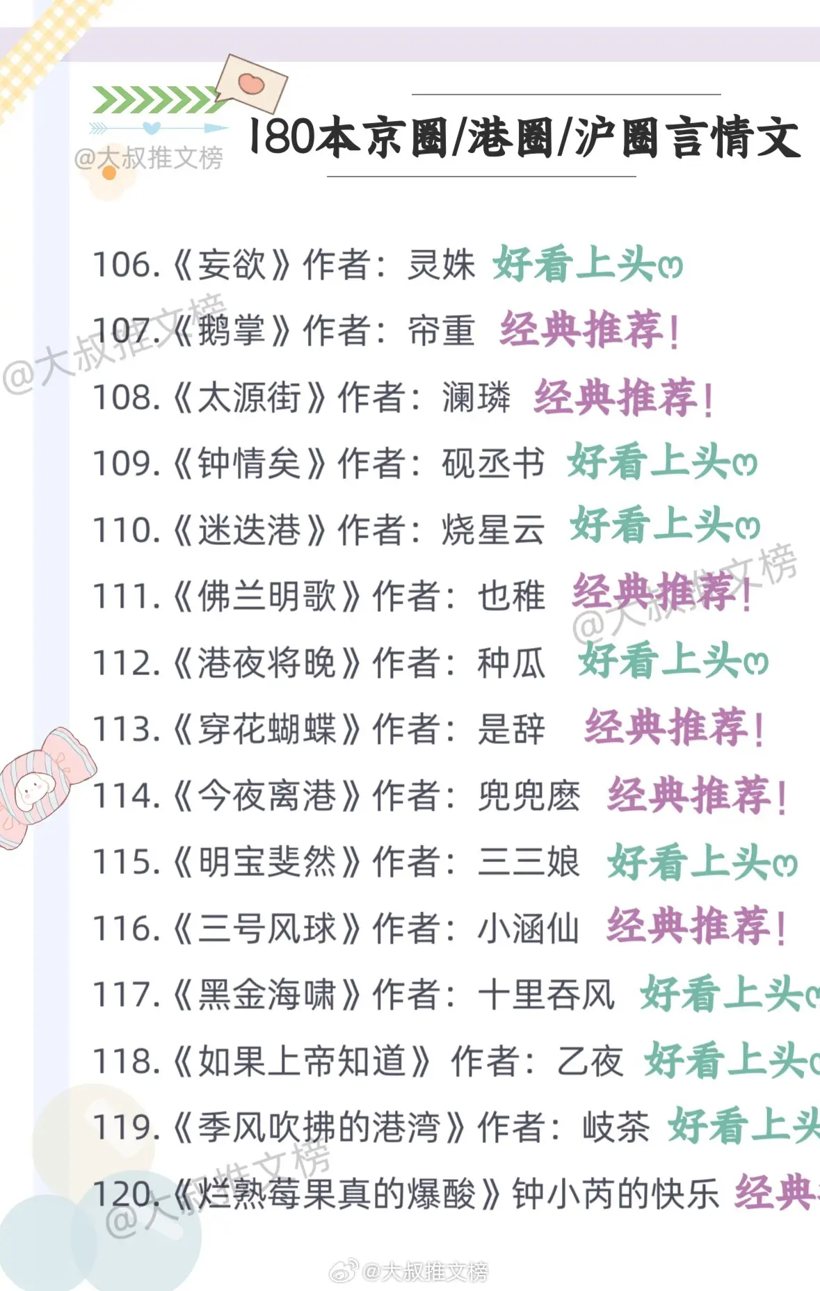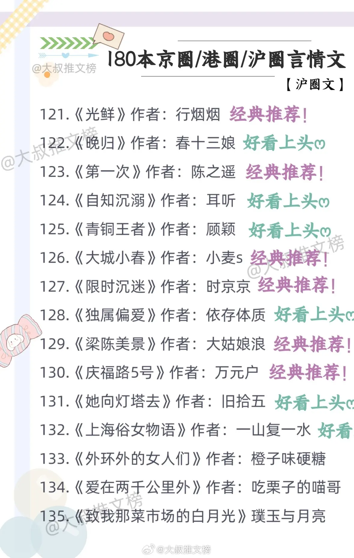 都是我自己看过,觉得好看的京圈/港圈/沪圈文,哪个是你的白月光呢?!...