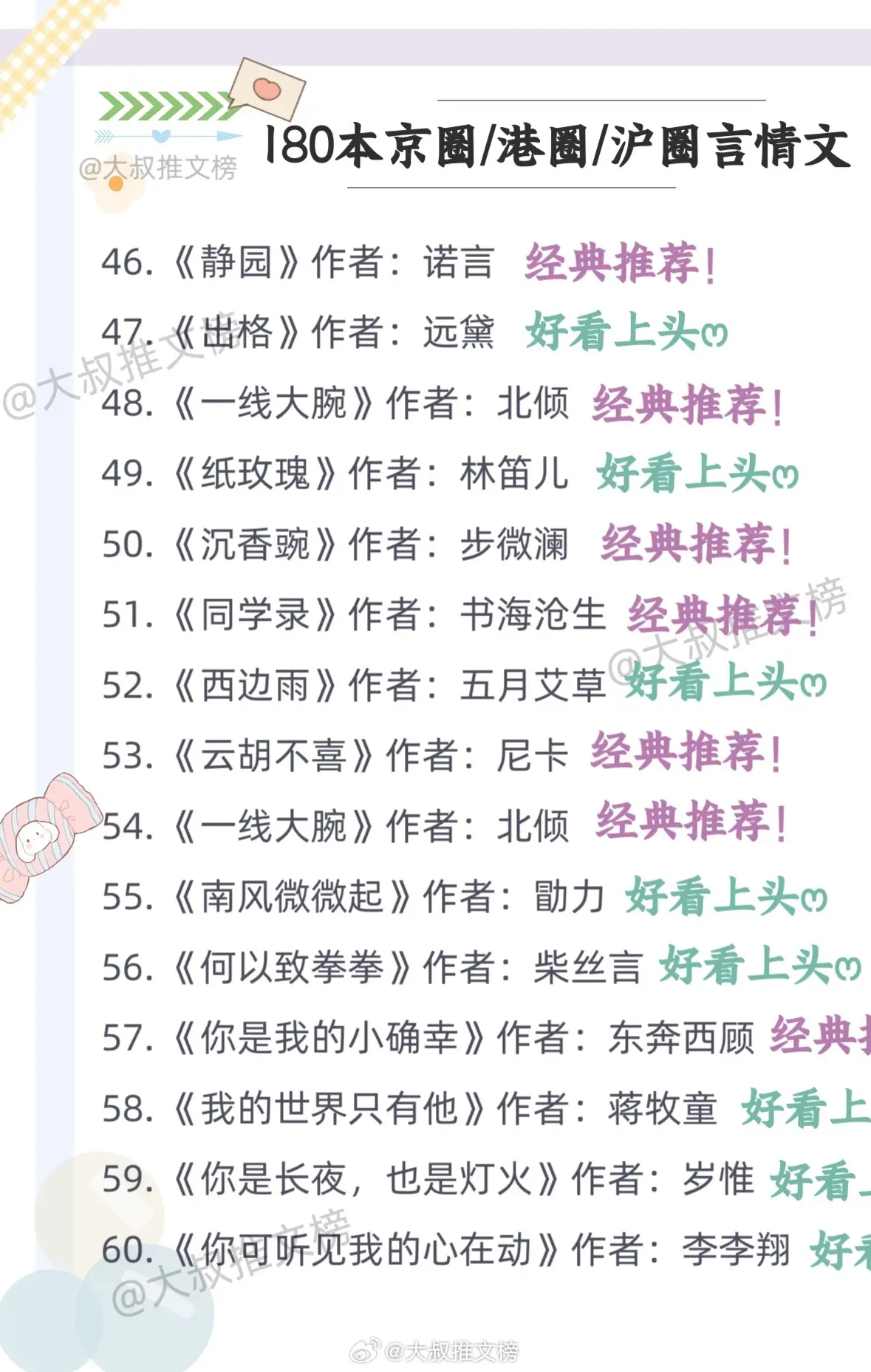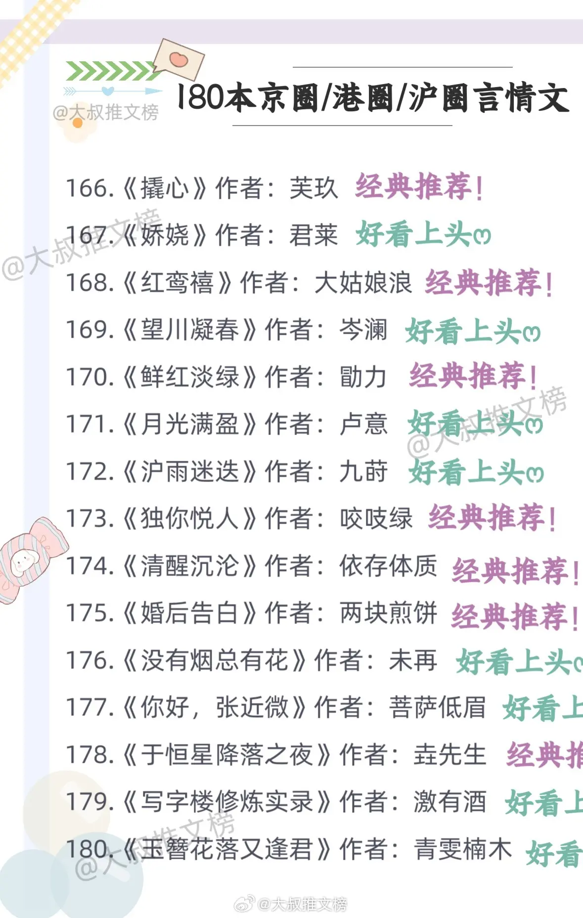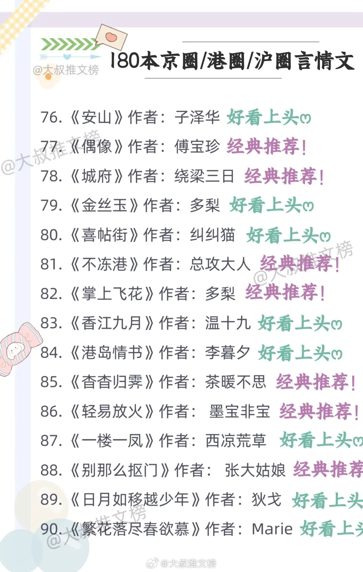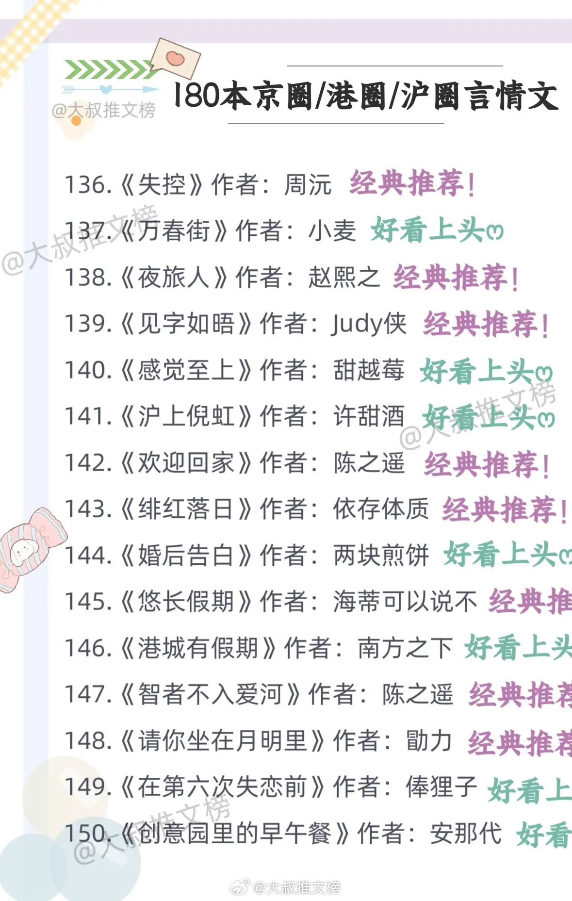 都是我自己看过,觉得好看的京圈/港圈/沪圈文,哪个是你的白月光呢?!...