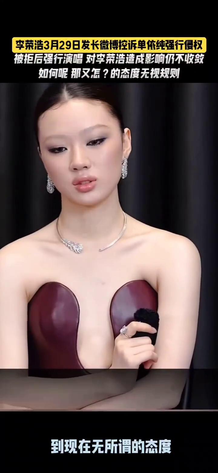 李荣浩3月29日发长微博控诉单依纯强行侵权,被拒后强行演唱对李菜浩造成影响仍不收敛。 3月29日,李荣浩发文控诉单依纯深圳演唱会未获授权演唱《李白》强行演唱,直指改编仅换形式,感慨其从之前舞台上哭泣到现在无所谓的态度,舞台表现与过往反差大。 我就是会唱歌。
