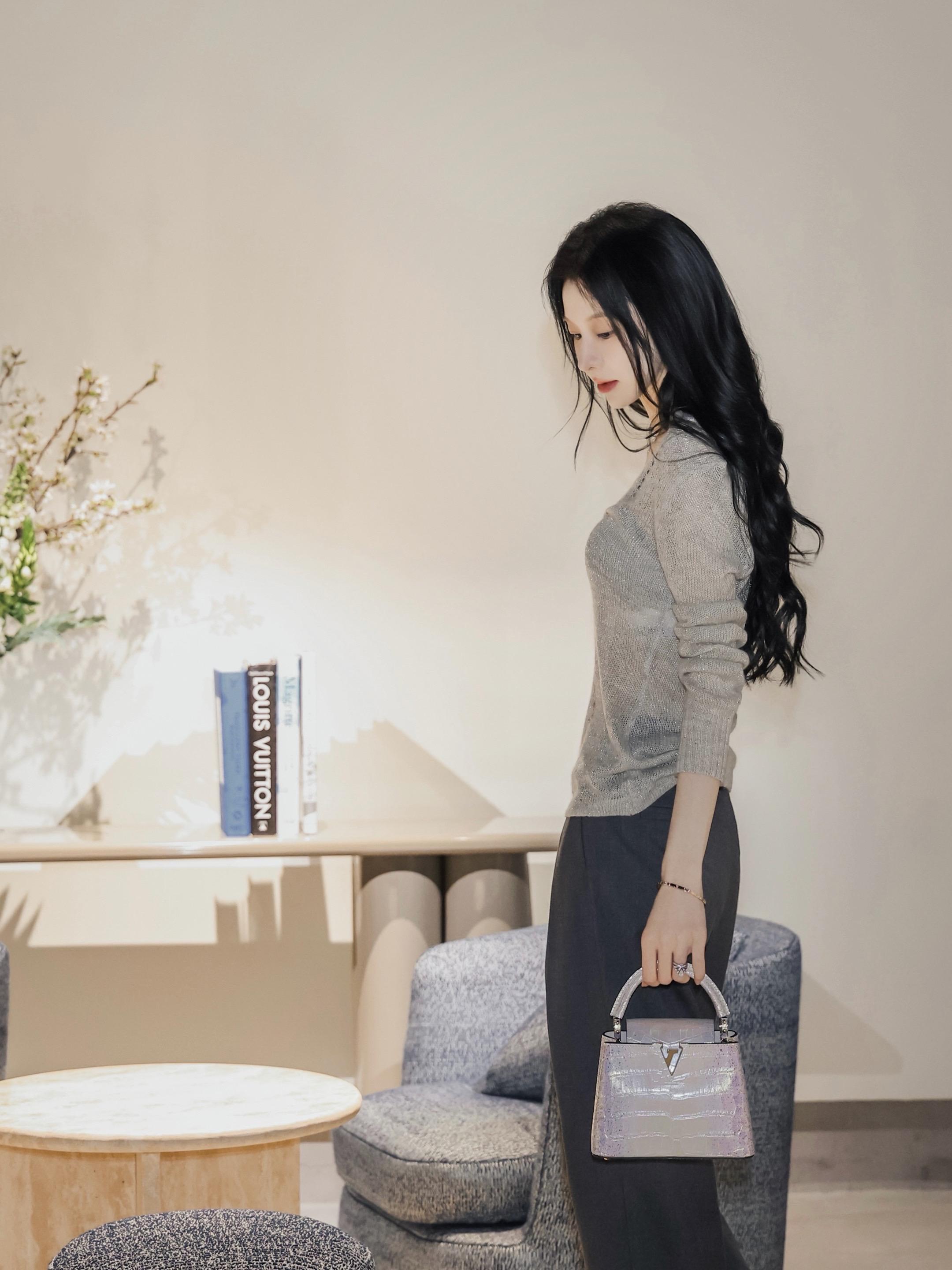 吴千语真的是随便一件黑格子衬衣加牛仔裤就特别的有型,她真的是十足的“老钱风”,越