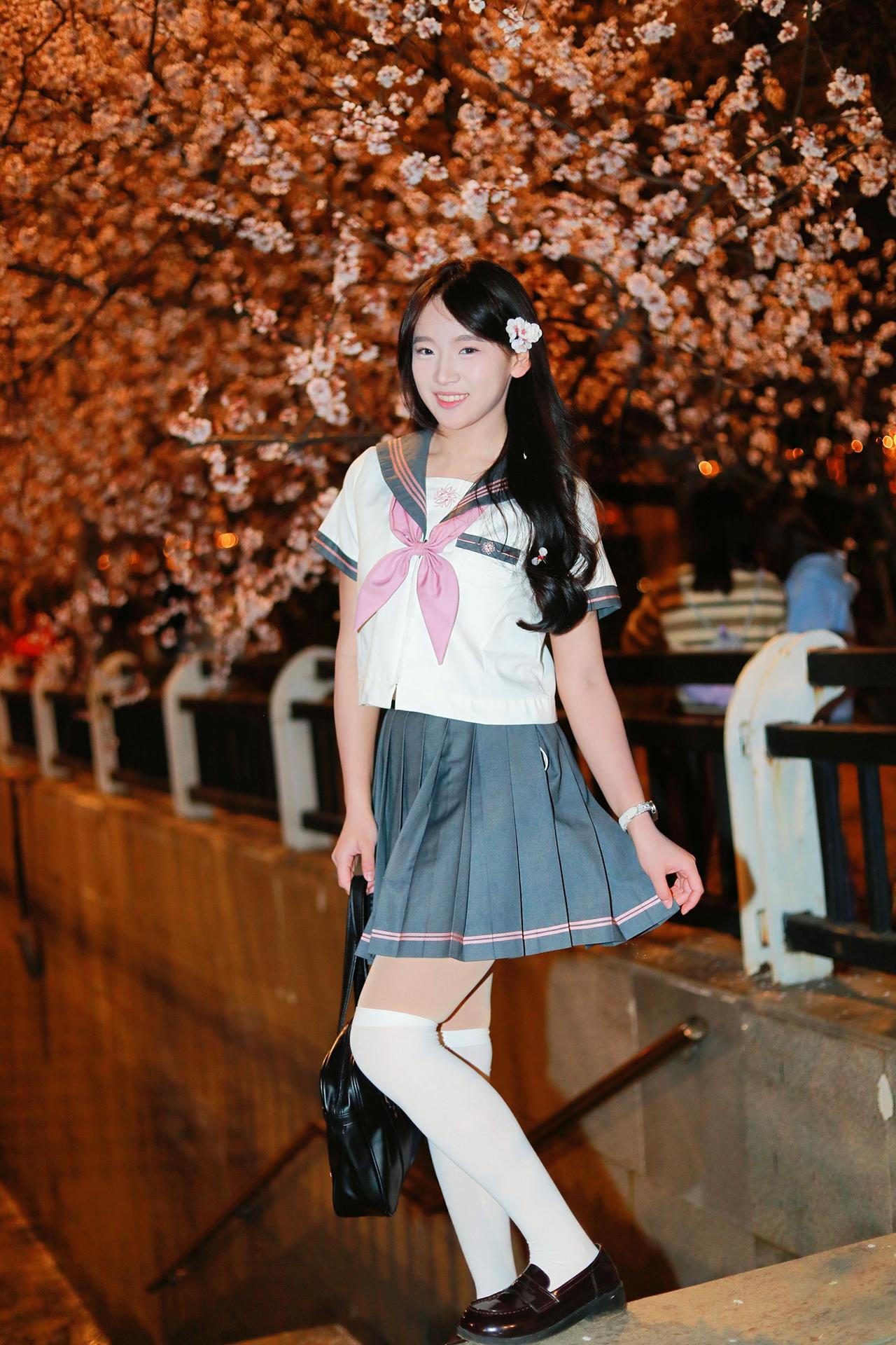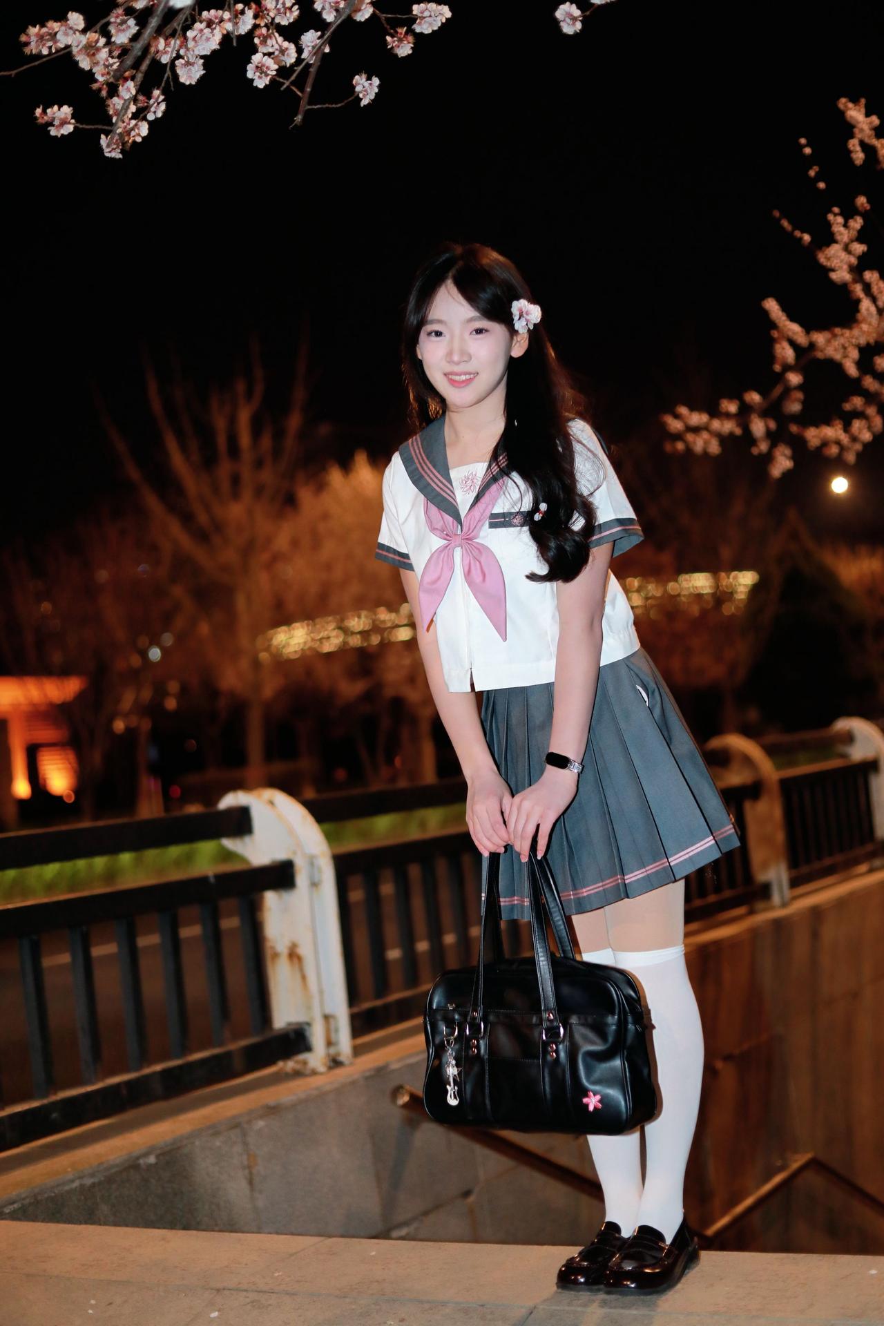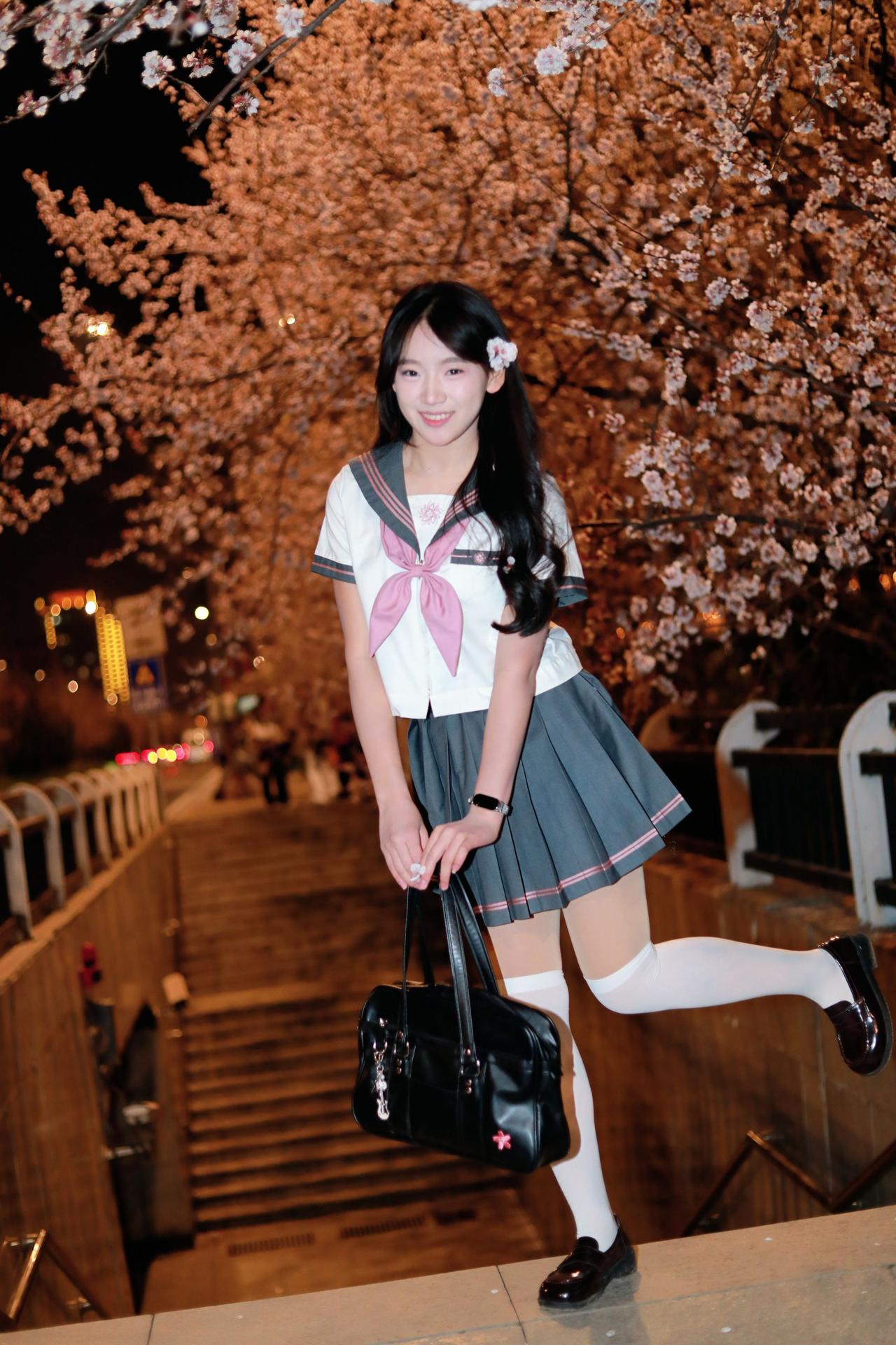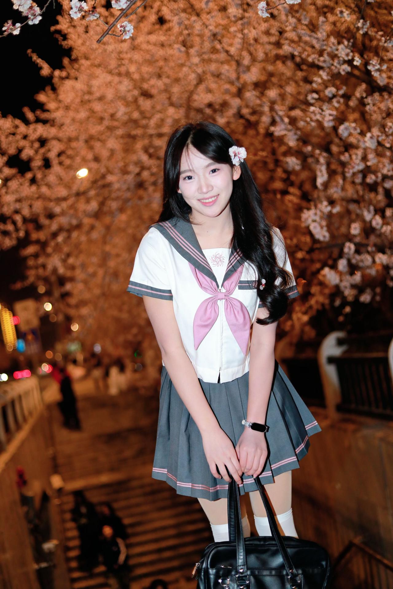 人像摄影约拍跟拍jk与杏花杏花夜景人像原创原图直出照片我镜头里的美女jk制服穿搭